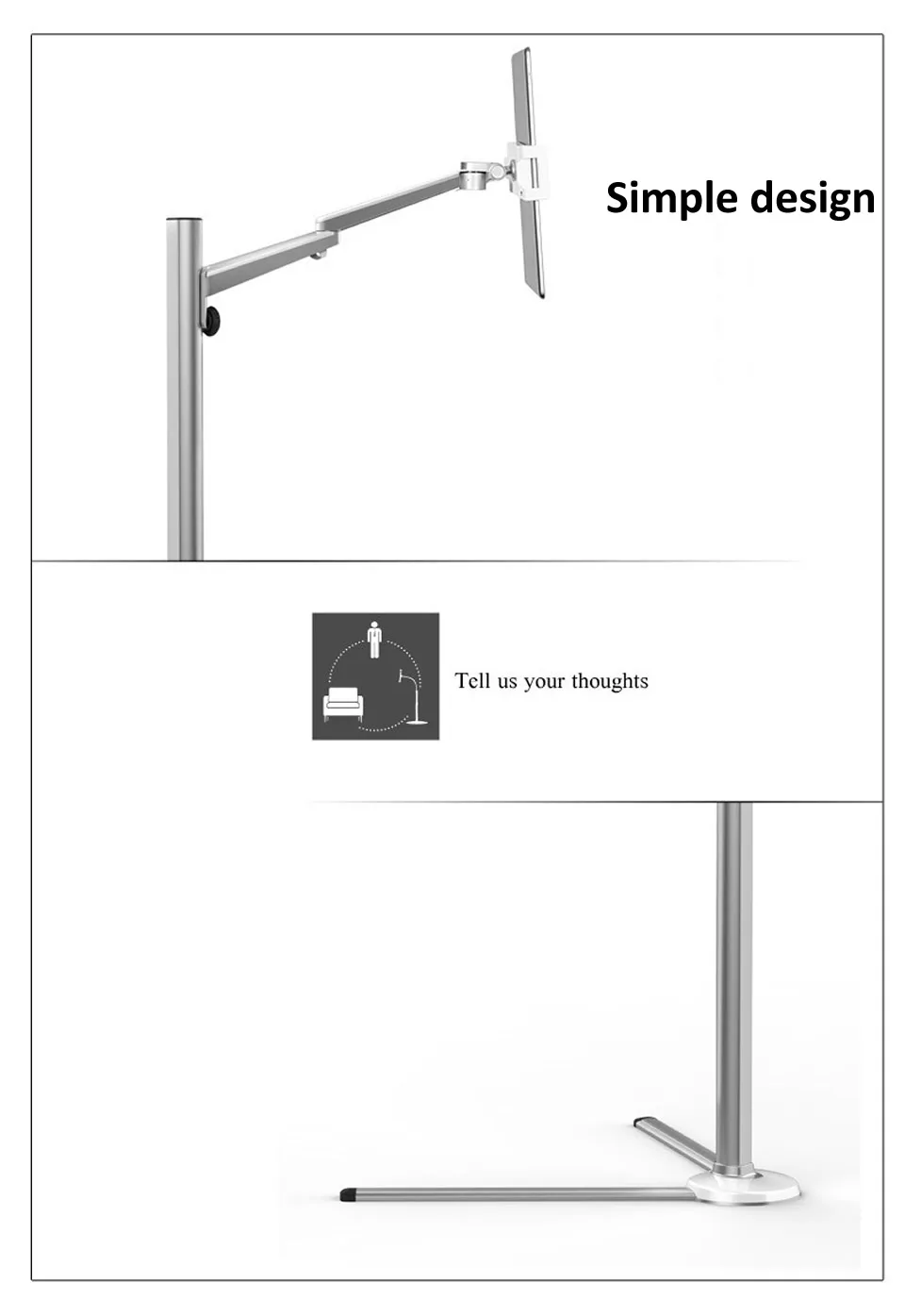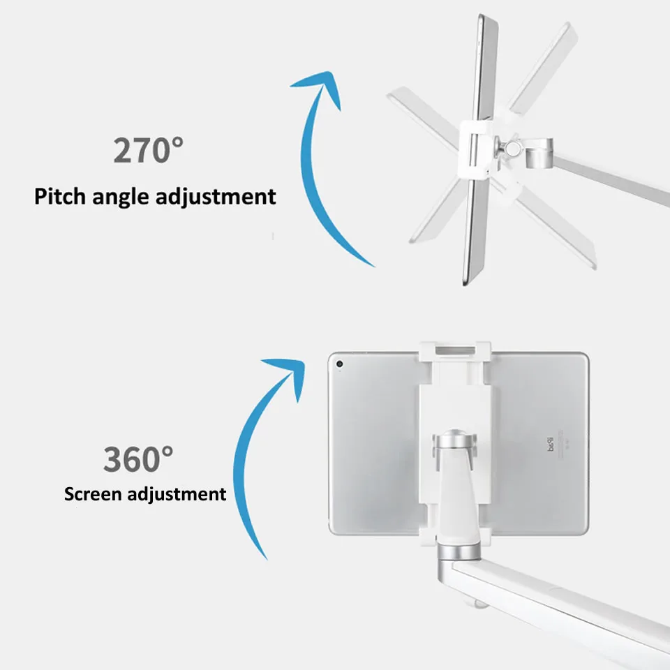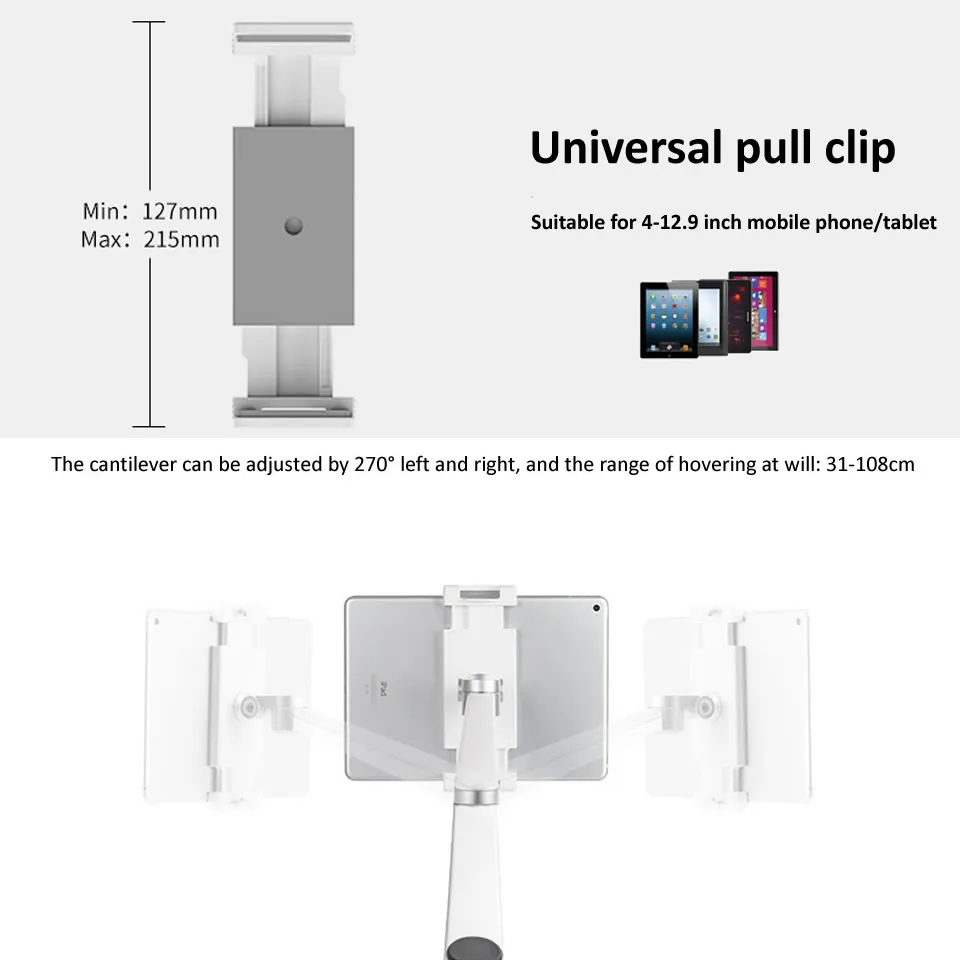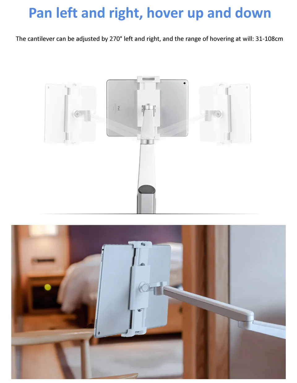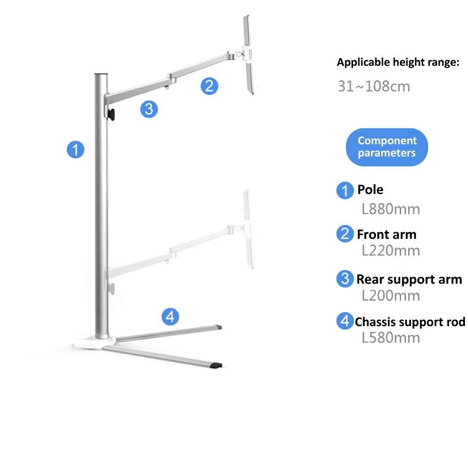 Soporte de suelo para tableta, soporte de aluminio ajustable en altura para teléfono móvil, brazo largo para iPhone