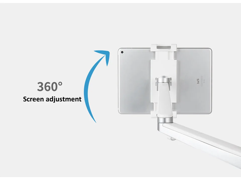 Diseño: Altura de la tableta, ángulo de elevación, ángulo de visión lateral, pantalla horizontal y vertical ajustable en múltiples dimensiones