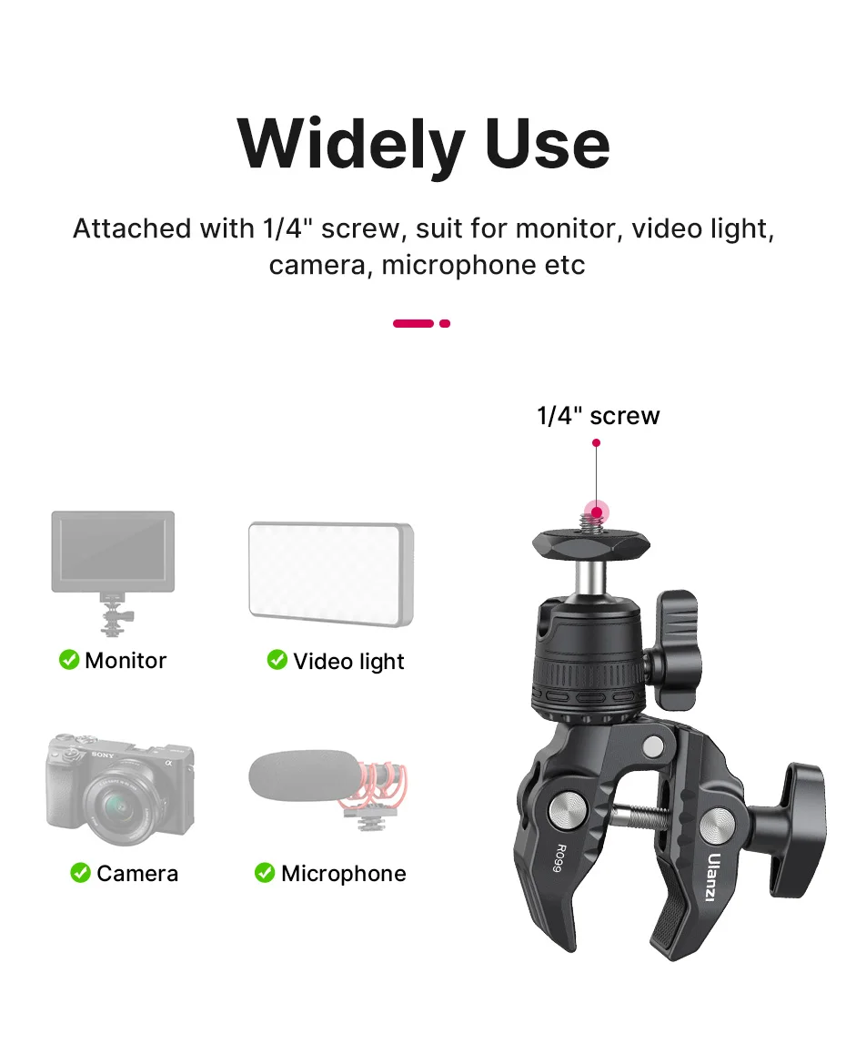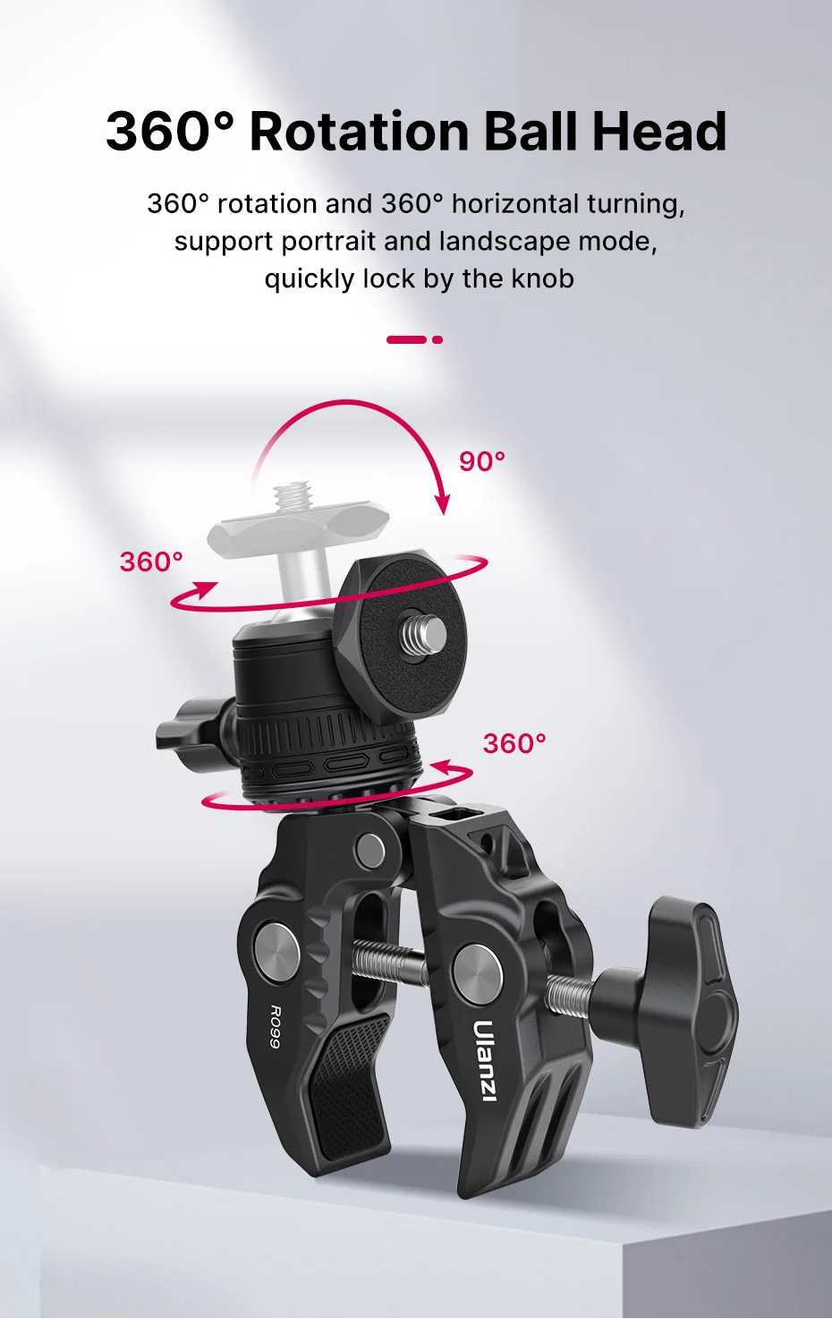 Soporte de abrazadera Ulanzi R099 con mini rótula esférica