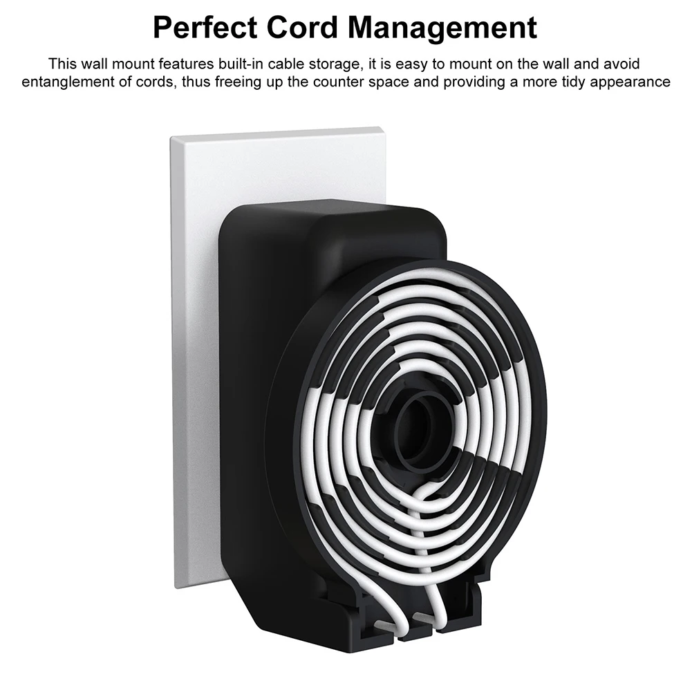 4.Gestión de cables:Este soporte de pared tiene un espacio de almacenamiento de cables incorporado, que es fácil de instalar en la pared y evita que los cables se enreden, liberando así espacio en el mostrador y brindando una apariencia más limpia.Mueva el equipo como soporte de pared o soporte a una ubicación más conveniente para que la apariencia del enchufe sea más limpia.