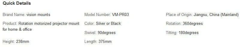Comprar Soporte de suspensión Universal para proyector, aleación de aluminio, 360 grados, montaje en pared, movimiento completo, retráctil, negro, PR03