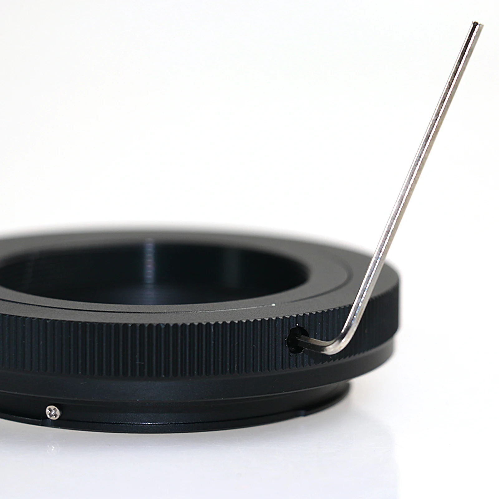 Hecho de aleación de aluminio de aviación de alta calidad, duradero para su usoRosca de tornillo estándar M42*0,75 MMPuede centrarse hasta el infinito.adecuado paratodos los dispositivos de montaje T/T2, p.Microscopio/telescopio/lente con montura en T/copiadora deslizante.Adecuado para:Para cuerpo de cámara Canon EOS DSLR/SLR yTelescopios/lentes/accesorios con montura T/T2El paquete incluye:1 anillo T2-EOS.1 llave.