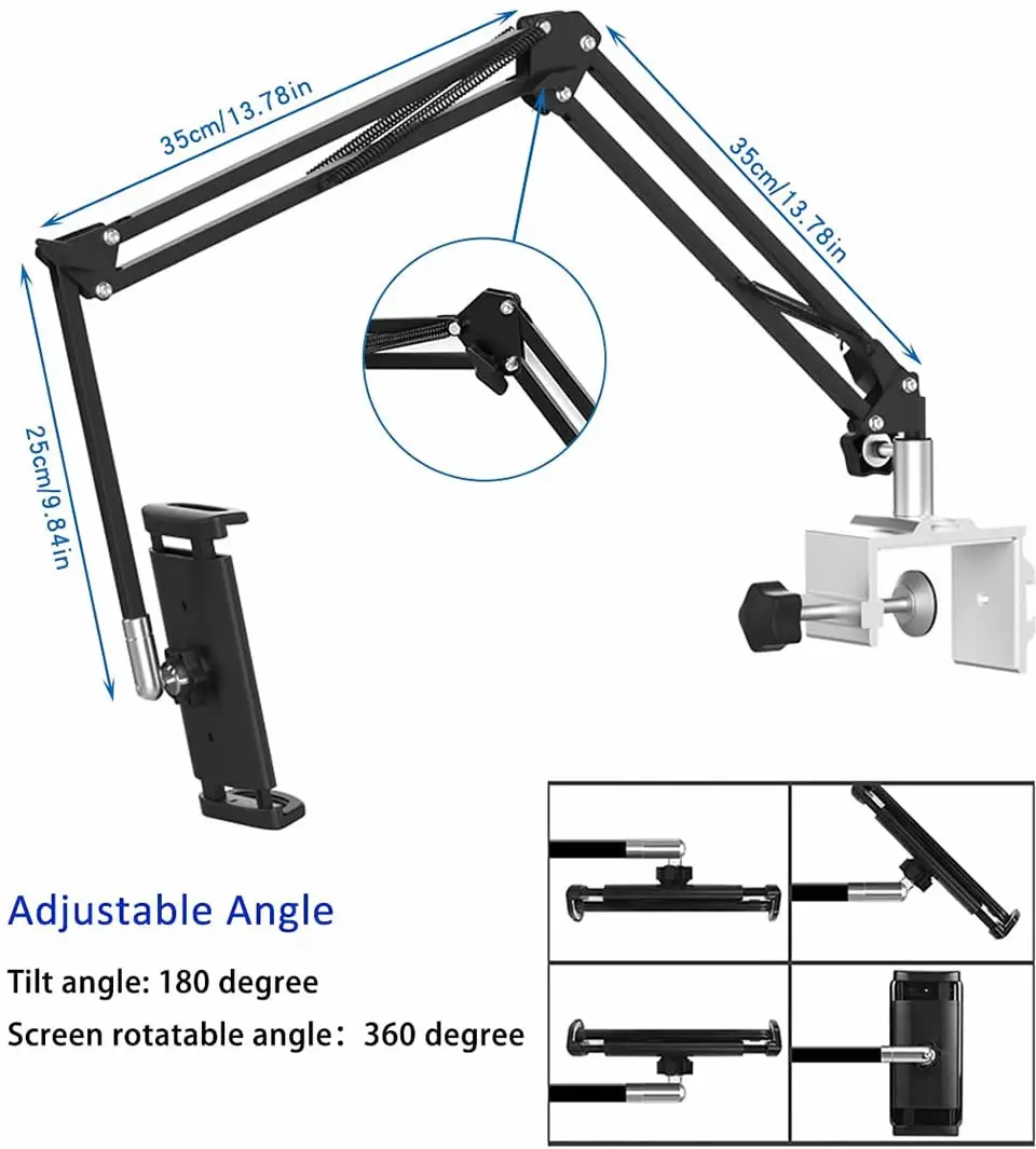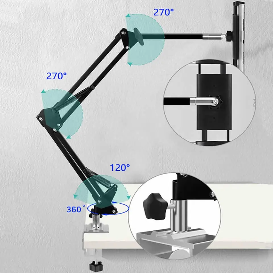 Comprar Soporte para tableta con brazo ajustable, soporte para mesa de cama, tabletas con rotación de 360 grados, soporte para teléfono móvil para iPhone iPad Air Mini Pro de 4-13 pulgadas