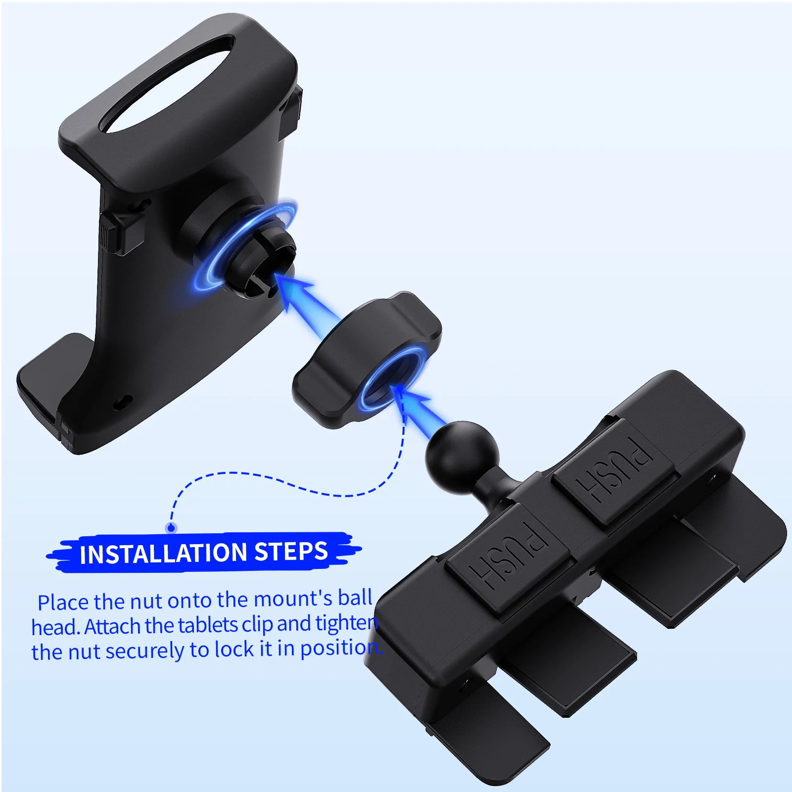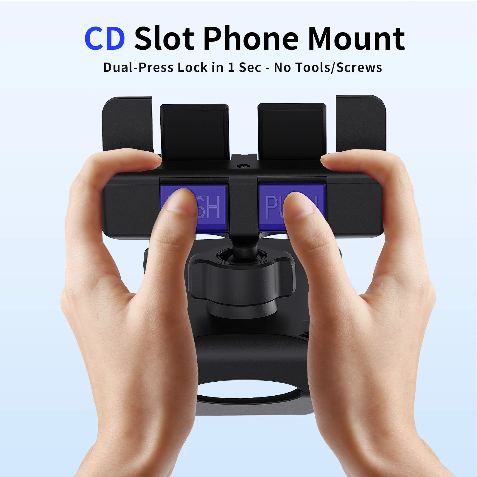 2.La base del botón está asegurada con botones. Antes de insertarla en la ranura para CD del automóvil, presione ambos botones simultáneamente.Después de insertarlo completamente en la ranura para CD, suelte ambos botones.La base de tornillos está asegurada con tornillos.Después de insertarlo completamente en la ranura para CD, apriete completamente los tornillos de la base para asegurarlo firmemente.