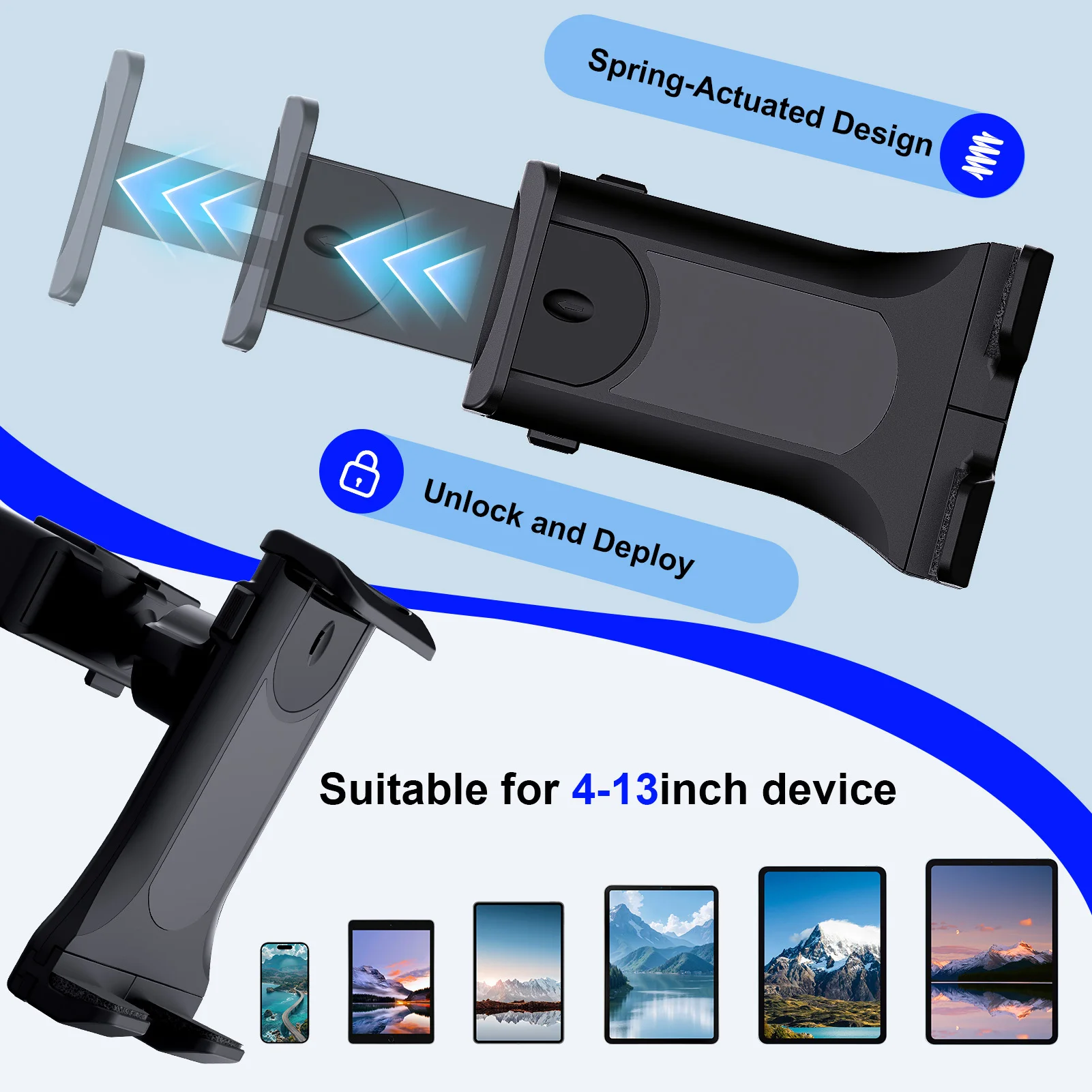 El producto que recibí no coincide con la descripción. No puede sostener tabletas grandes como se anuncia: mi iPhone 15 Pro Max apenas cabe con una funda, por lo que usarlo con un iPad Air es imposible. El soporte para el CD también es inestable; en mi Opel Astra GTC H se suelta con facilidad. La calidad de construcción se siente promedio, y esperaba algo más robusto. El artículo llegó a tiempo, pero con un embalaje muy sencillo. En general, estoy decepcionado. El producto no funciona como se anuncia.