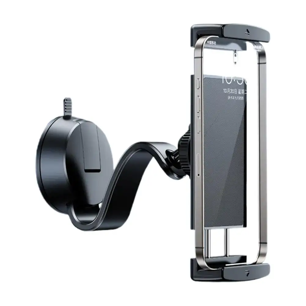 Diseño de ventosa estable y confiable: Equipado con fuertes ventosas, se puede fijar firmemente a superficies lisas como parabrisas de automóviles, tableros o ventanas y espejos de la casa, lo que garantiza que su dispositivo se pueda fijar de forma segura incluso en entornos con baches.