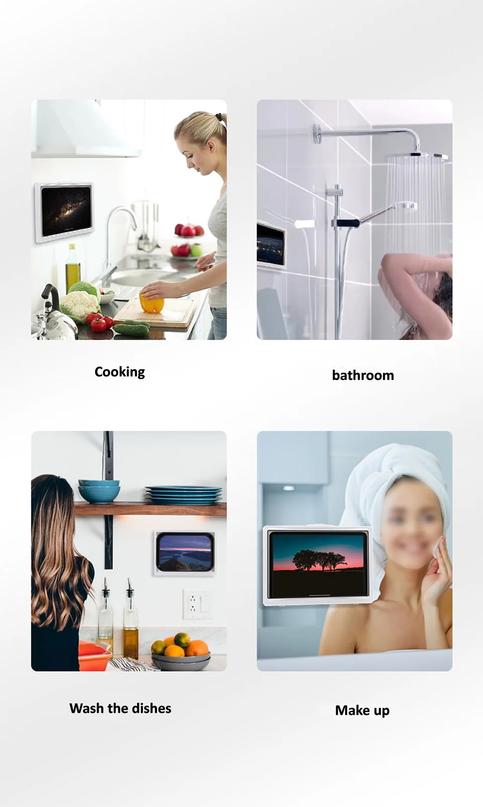 Soporte para tableta de ducha con montaje en pared, funda impermeable para tableta de baño, ducha con pantalla táctil