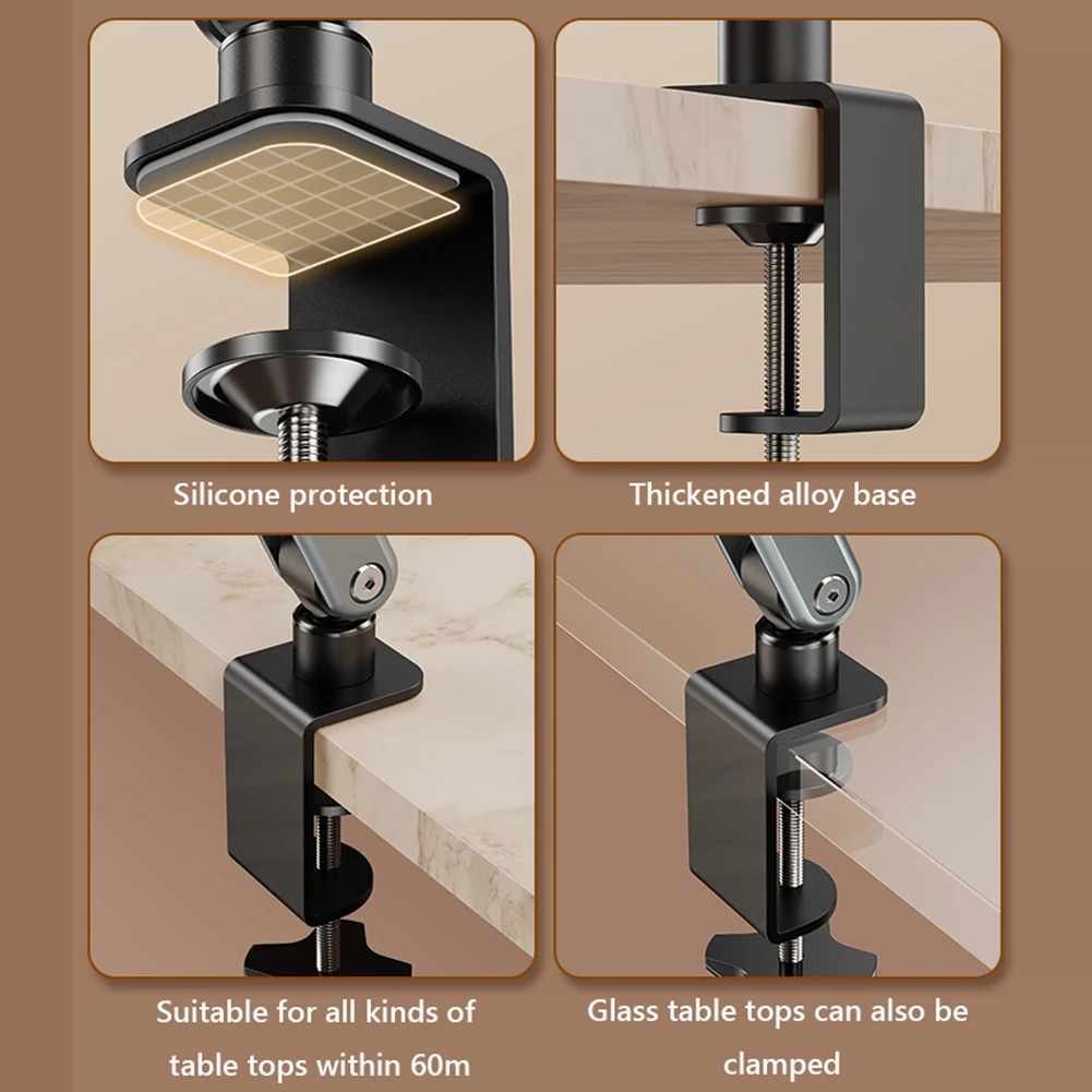 5.Fácil de usar y portátil:Nuestro soporte para tableta cuenta con una base con cierre en espiral (diseño de abrazadera) que se puede montar fácilmente en su escritorio, gabinete de cocina, estantería o cualquier lugar adecuado de hasta 60 mm de espesor.La abrazadera incluye almohadillas de silicona para proteger sus muebles contra rasguños.Con su diseño plegable, el soporte se pliega a un tamaño compacto de 39*5*5 cm, lo que facilita su almacenamiento y transporte, manteniendo su espacio ordenado y mejorando la comodidad de usar su tableta en cualquier lugar y en cualquier momento.