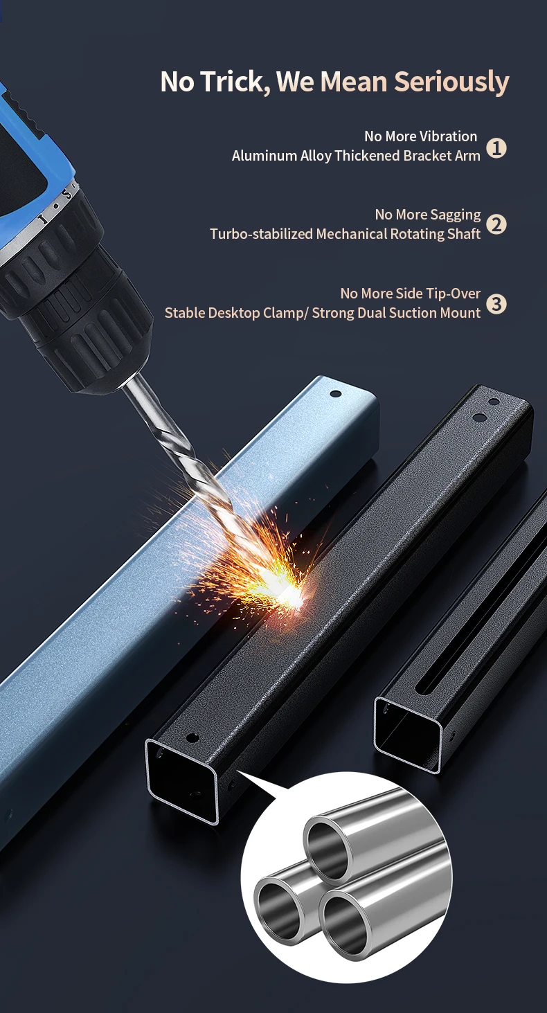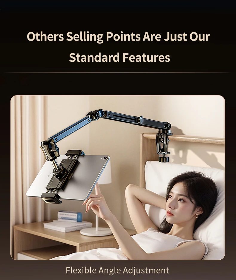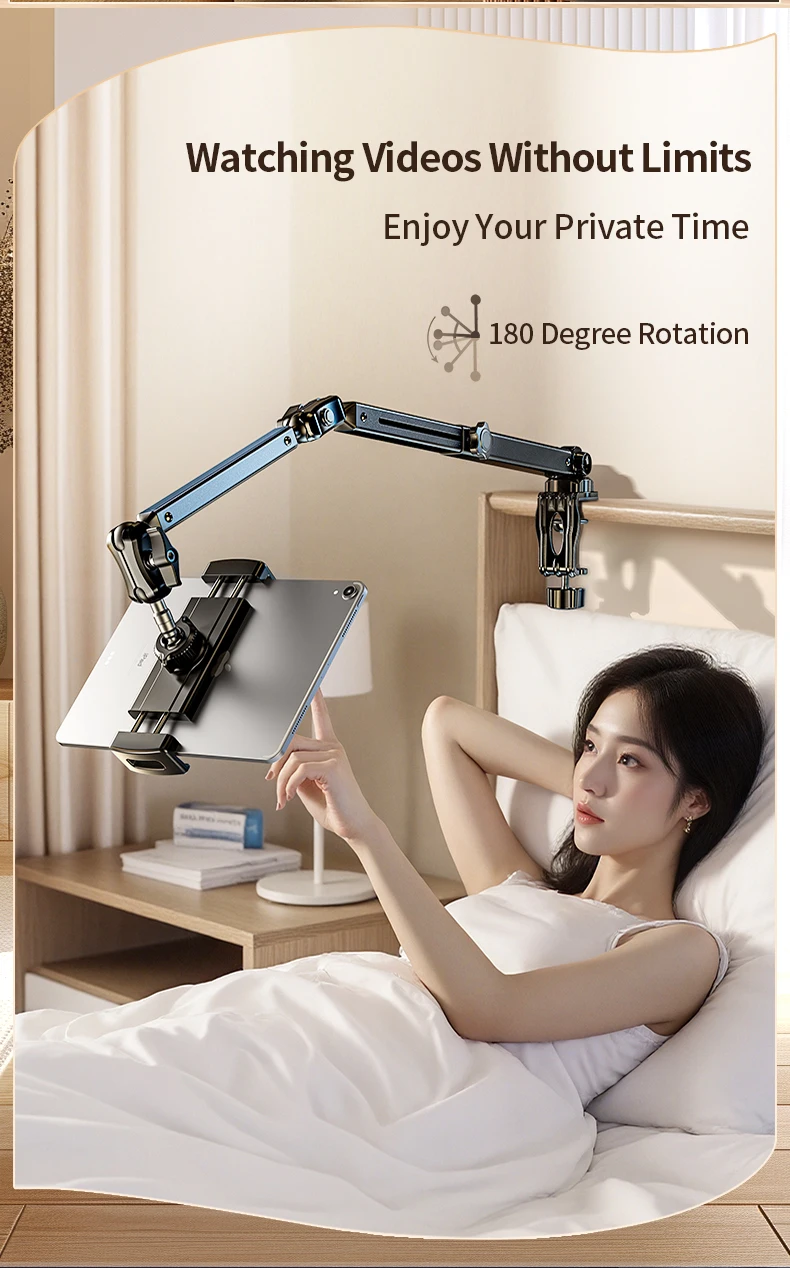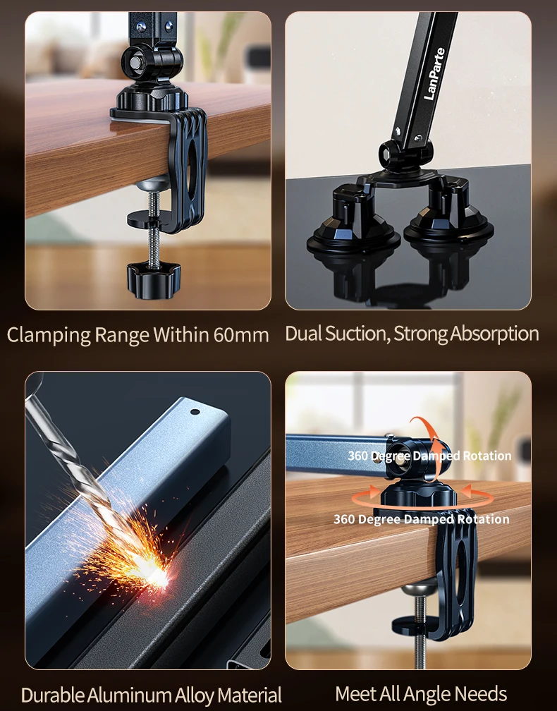Soporte para tableta Lanparte para escritorio, soporte con abrazadera para iPad, 360 ° Soporte de brazo ajustable para tabletas iPad Pro/Air/,Galaxy Tabs, 4,7"-13,5"