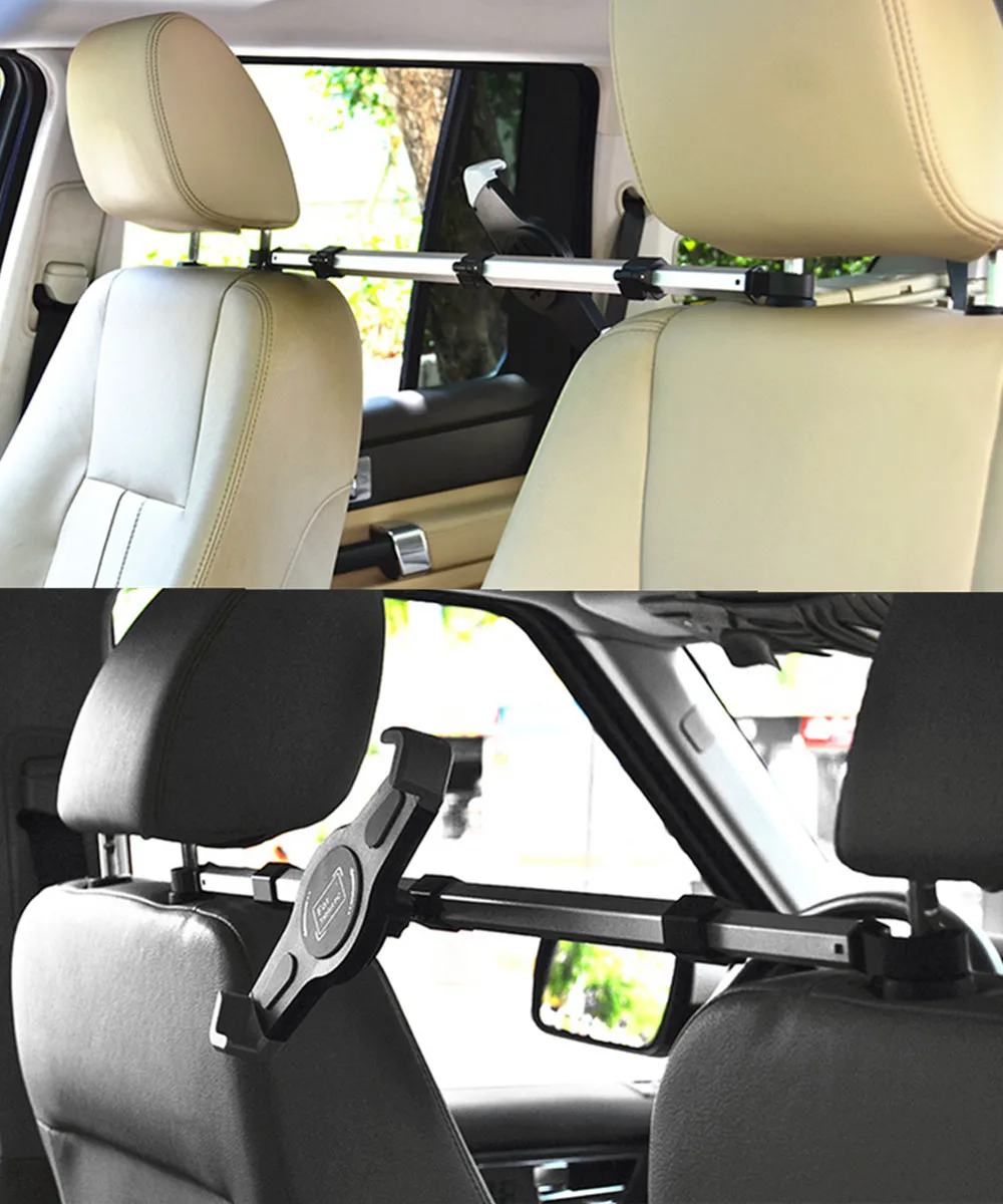 El producto funciona en el reposacabezas del coche entre dos asientos.