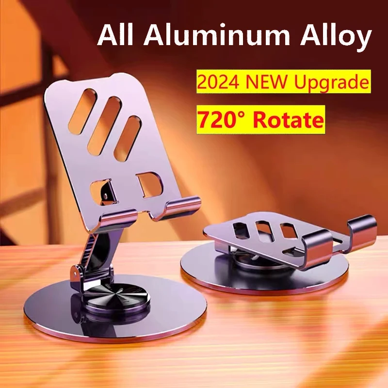 Soporte para tableta portátil de aleación de aluminio con rotación de 720 para iPad, soporte plegable ajustable para escritorio perezoso en vivo, soporte para teléfono móvil