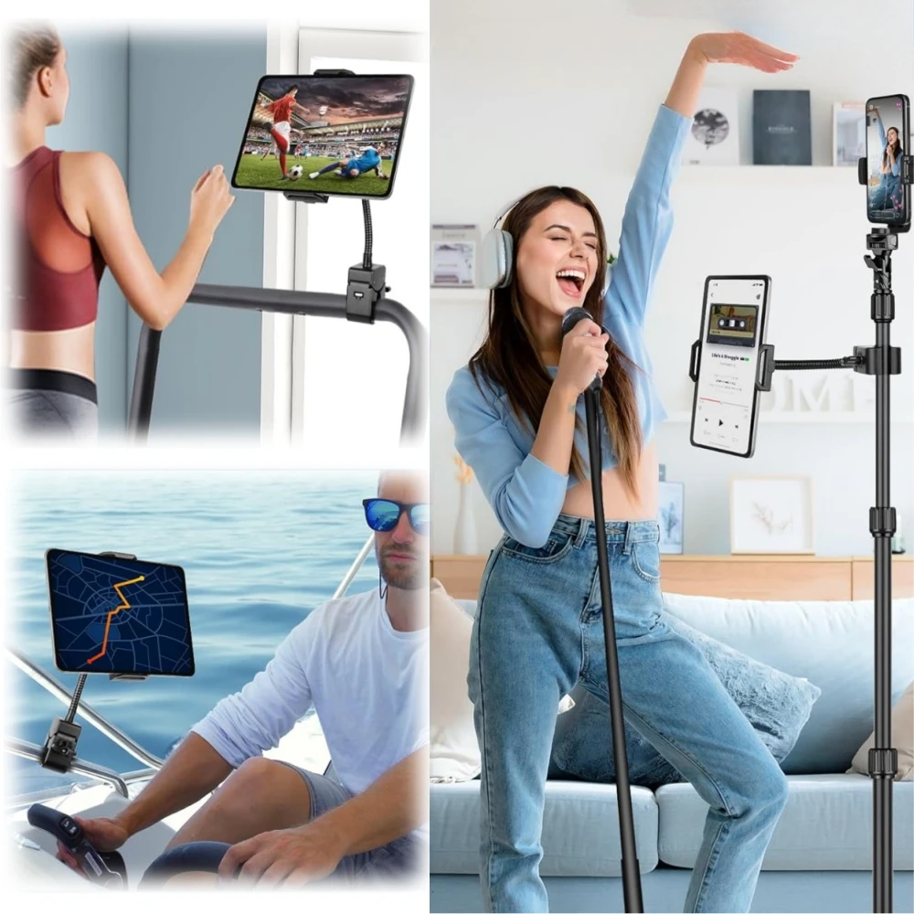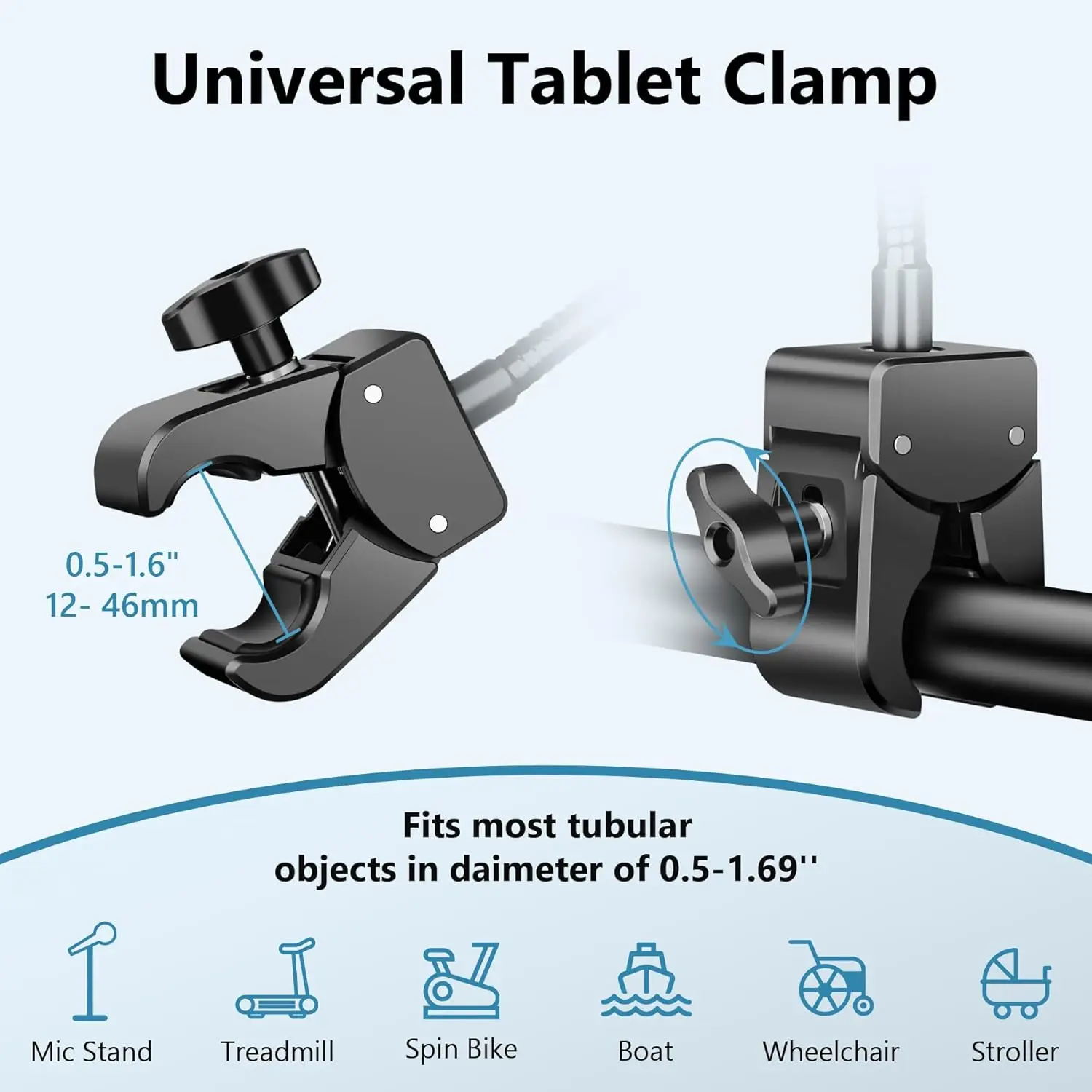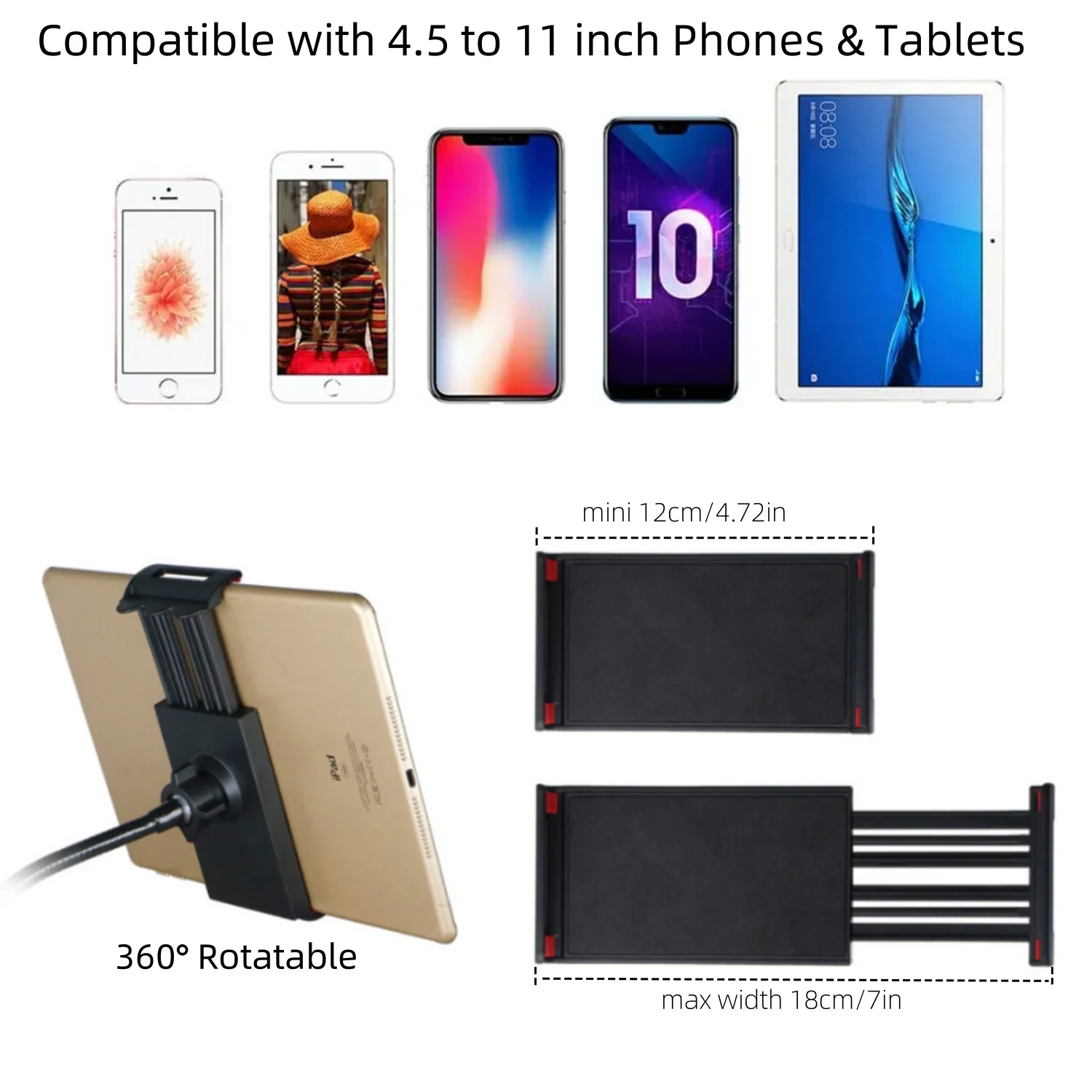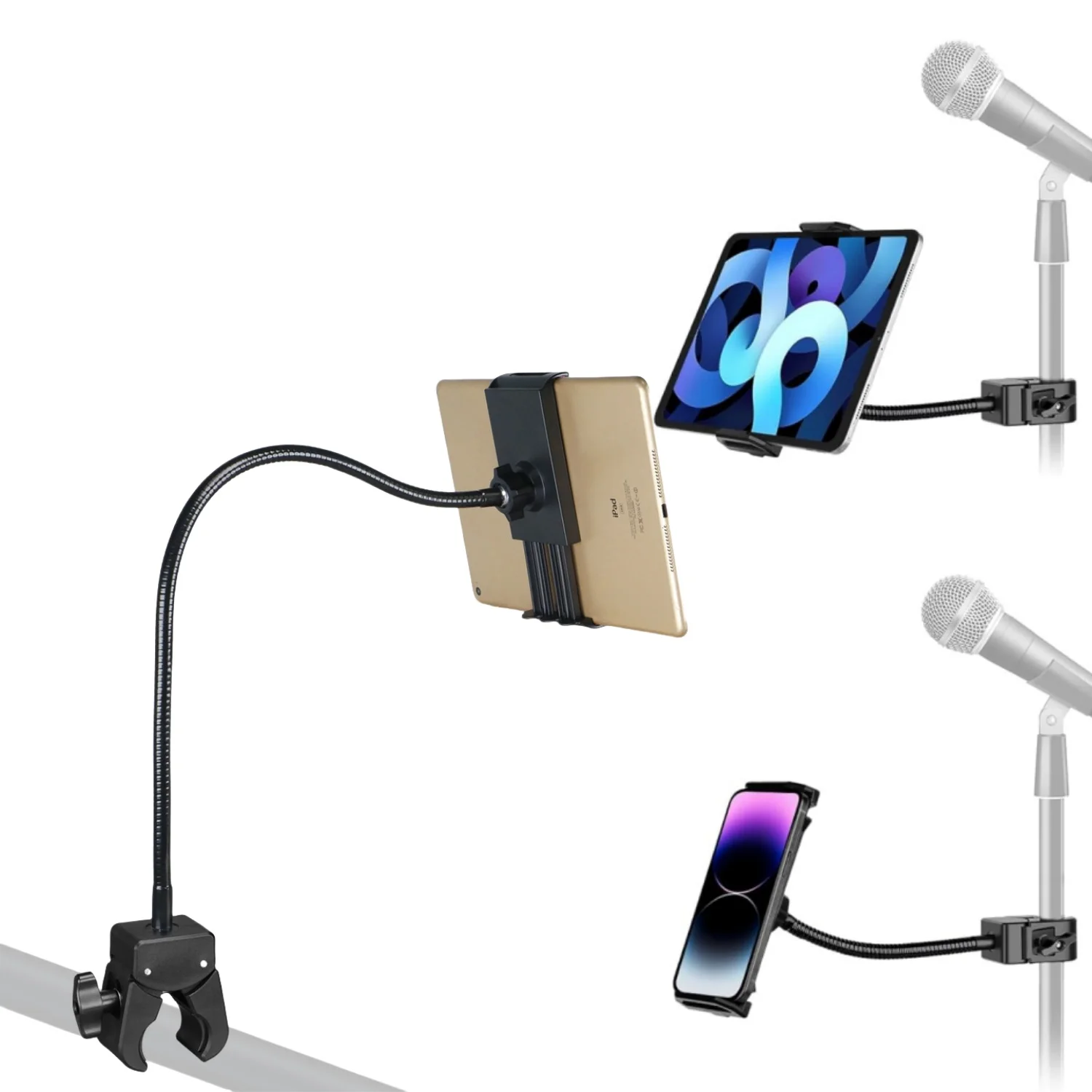 Comprar Soporte para tableta y teléfono con brazo de cuello de cisne de 50cm para cama, escritorio, avión, cochecito de música, soporte de abrazadera fuerte y seguro para dispositivo de 5-11 pulgadas