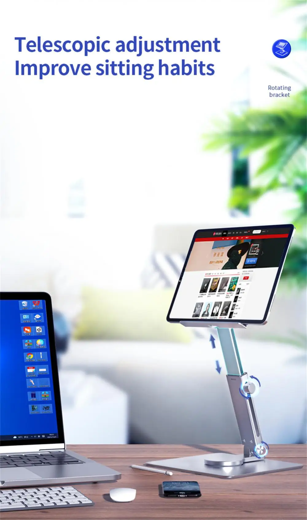 【Diseño ergonómico】La mesa de altura ajustable es una ventaja para los ojos y el cuello, lo que te hace trabajar más relajado.