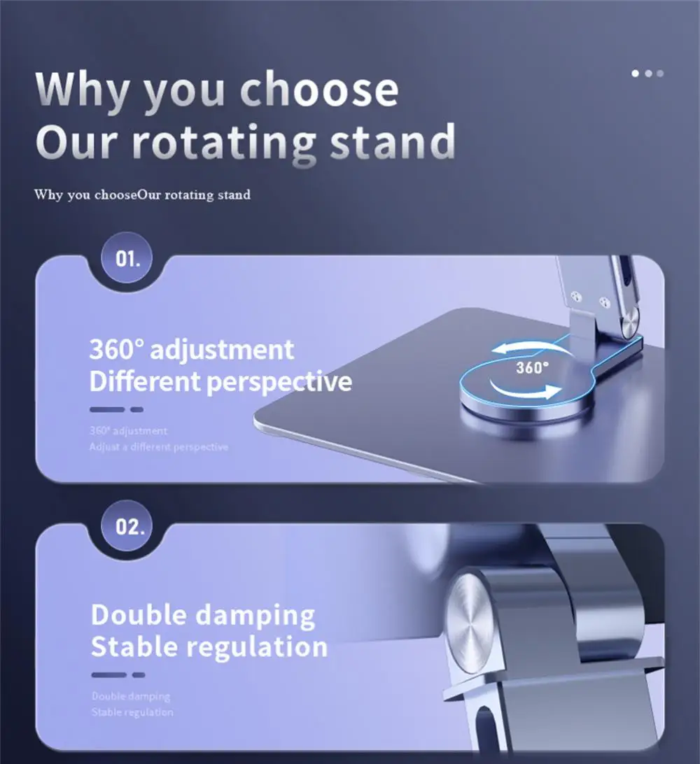 Soporte para tableta Xnyocn de aleación de aluminio plegable 360° Soporte giratorio manos libres soporte para portátil de escritorio antideslizante para iPad