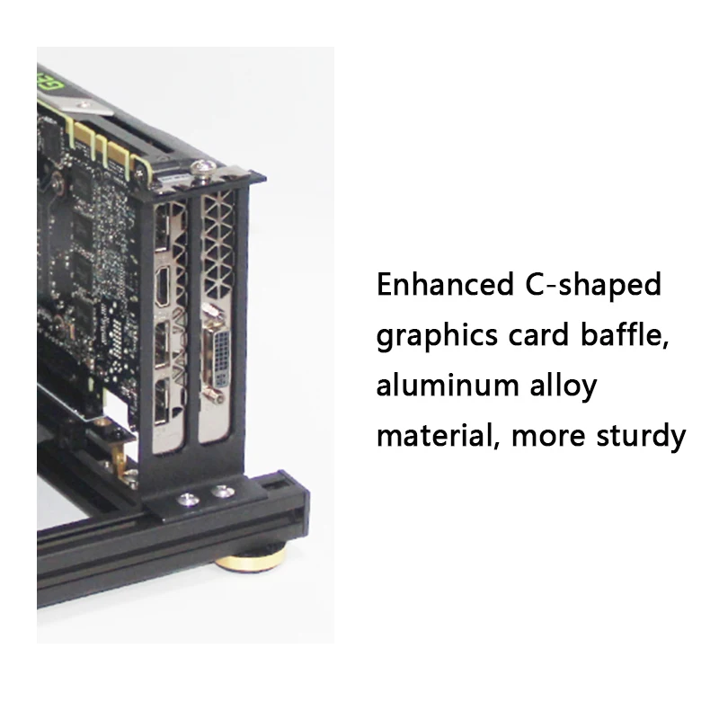Paquete: Base de tarjeta gráfica * 1 Juego, deflector de tarjeta gráfica * 4 juegos, piezas de fijación de cable de extensión de acero inoxidable * 8 juegos, almohadillas de pie * 1 Juego