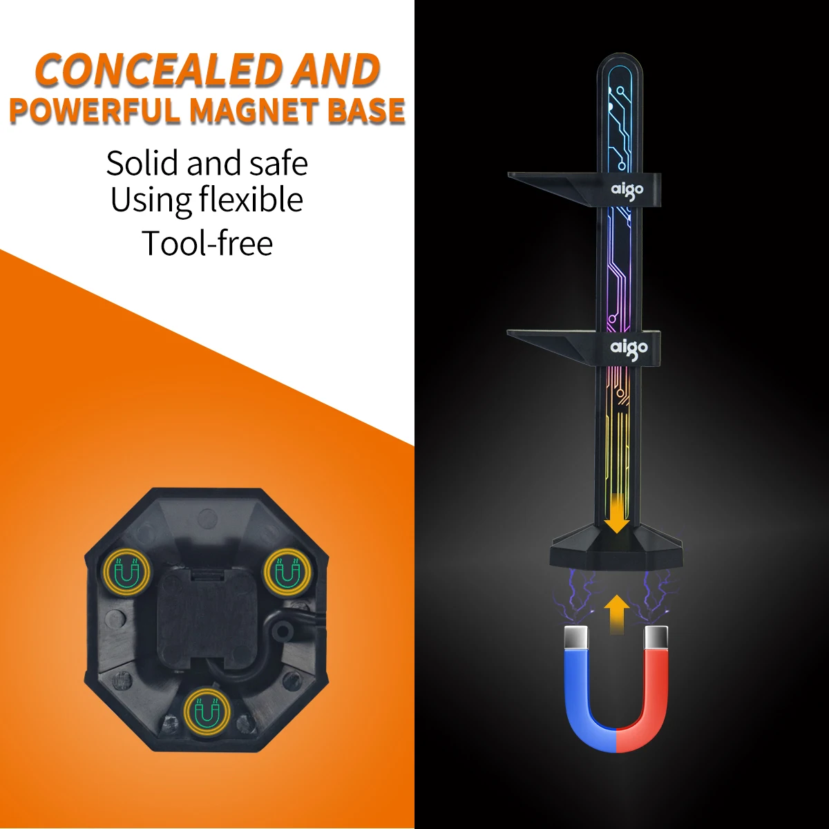 8. Conceal magnet base, which can be expanded into multi-functional bracket, humanized, safe, stable and flexible to avoid cumbersome installation