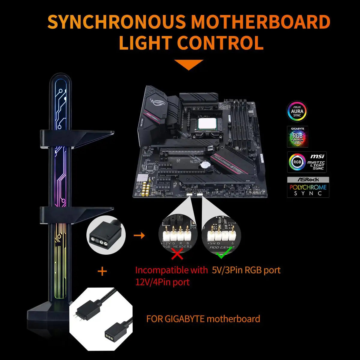 7. Support for Asustek, MICROSTAR, Gigabyte and Huaqing mainboards to control through the mainboard, and synchronize the lighting with other DRGB products