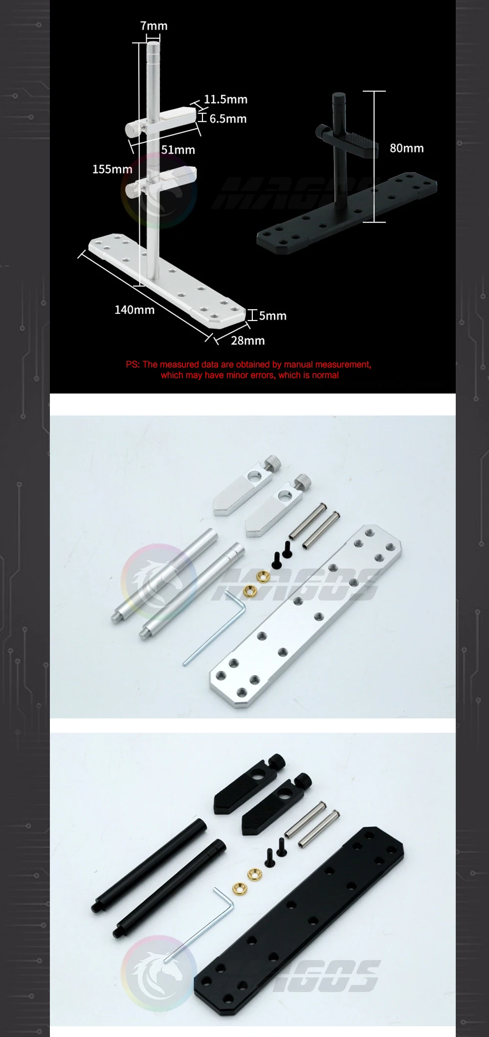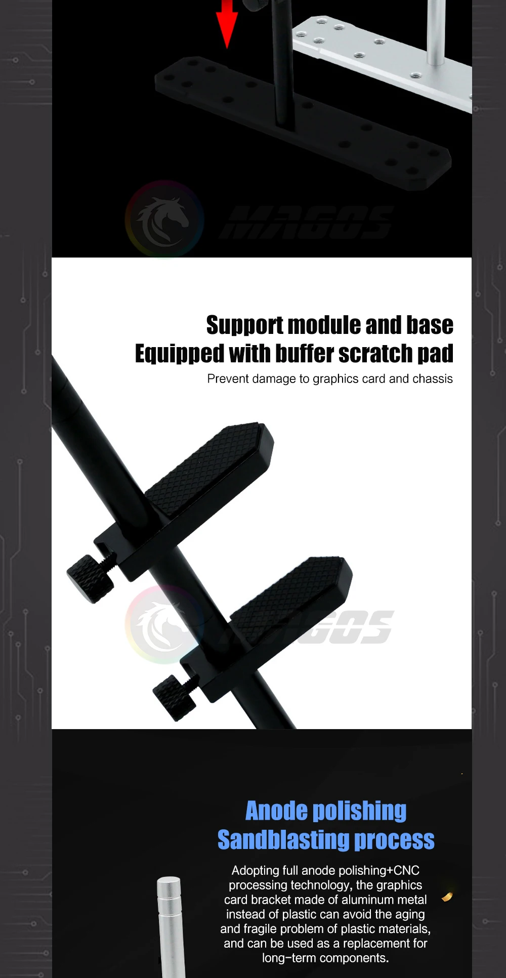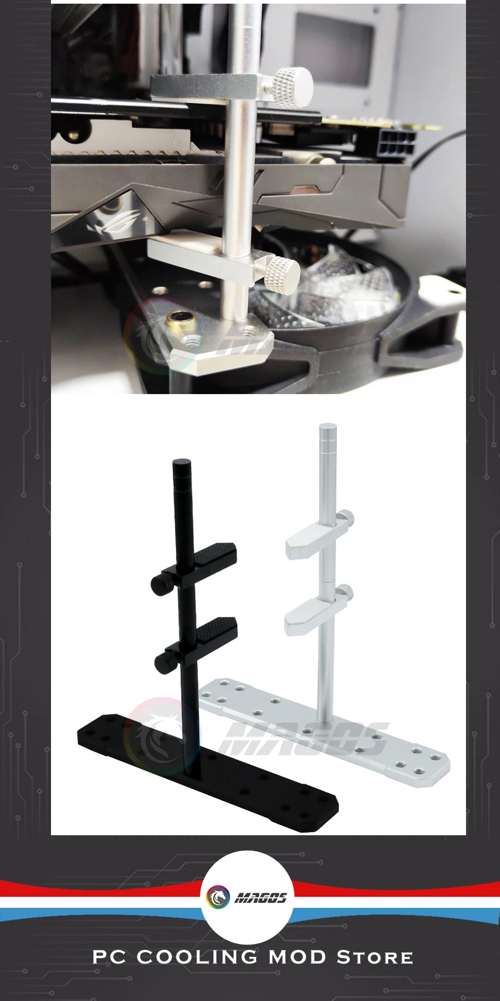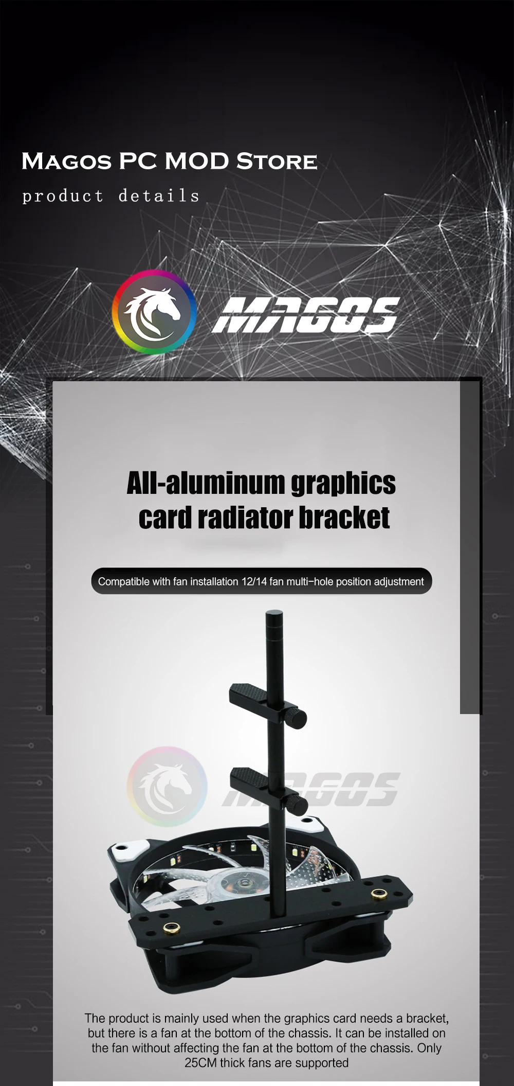 Soporte para tarjeta gráfica de aleación de aluminio, montaje de posición del ventilador de 12 cm/14 cm para caja de panel de vidrio transparente lateral universal