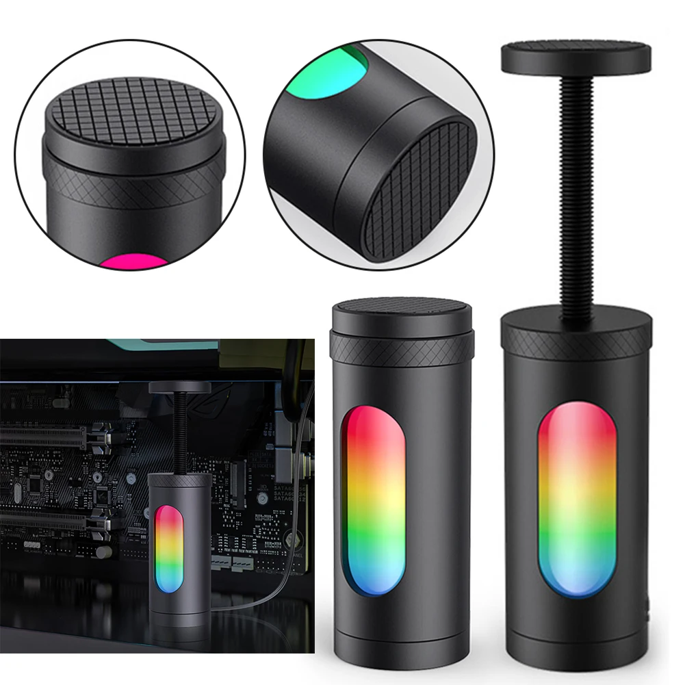 1.Diseño en espiral ajustable para ajuste universal:El soporte de la tarjeta gráfica presenta un innovador diseño en espiral telescópico que permite un fácil ajuste y bloqueo de la altura del poste de soporte.Esta operación fácil de usar es compatible con varias especificaciones de carcasa, incluidas ATX, M-ATX e ITX, brindando un soporte eficaz para la parte trasera de la tarjeta gráfica y garantizando su seguridad y estabilidad.