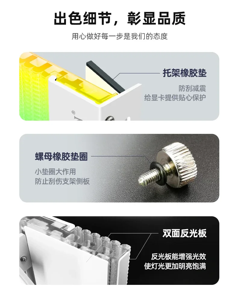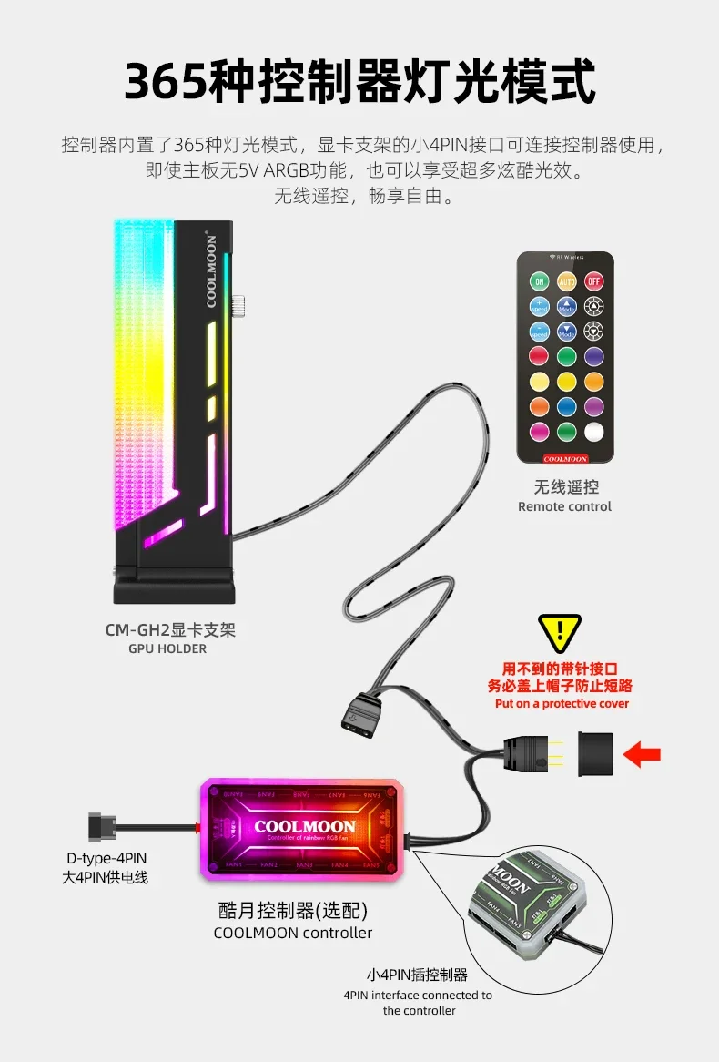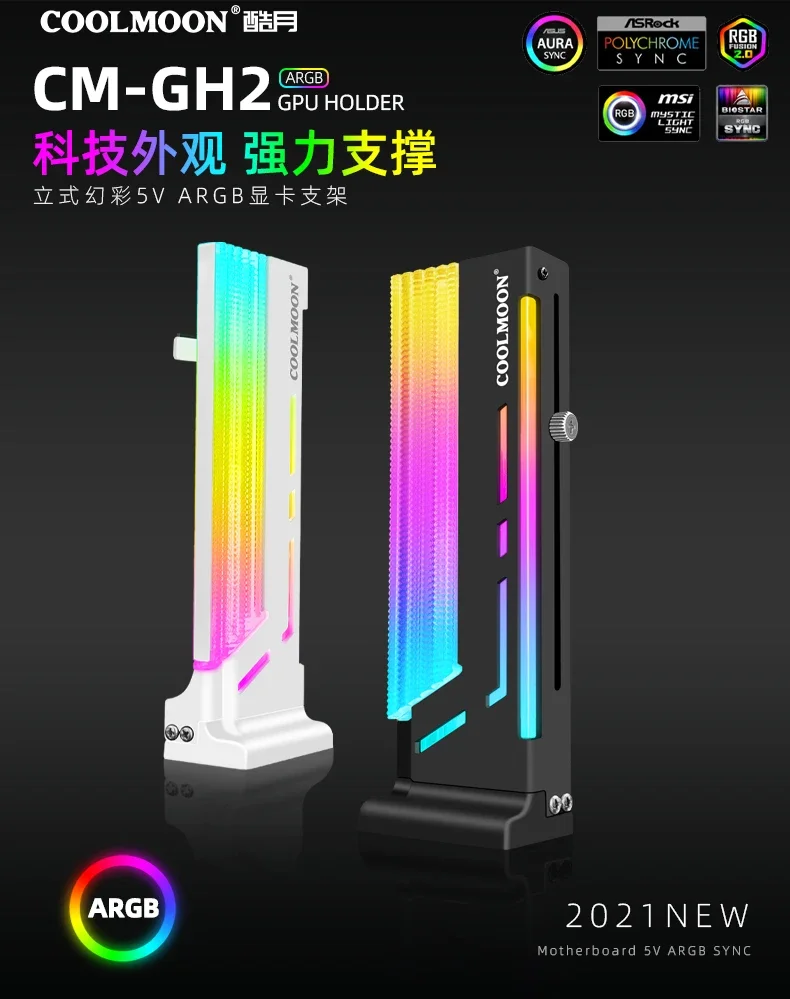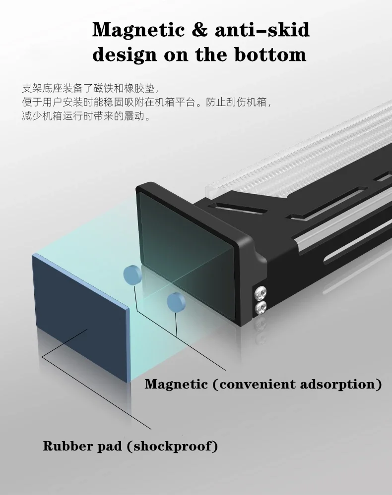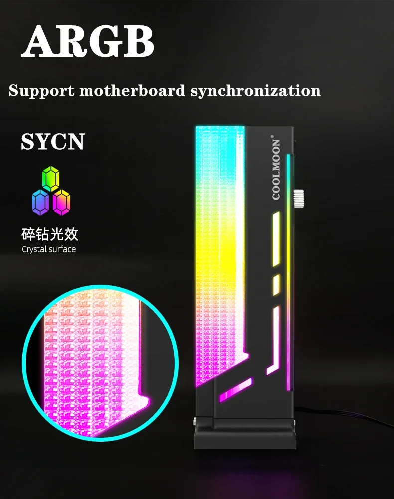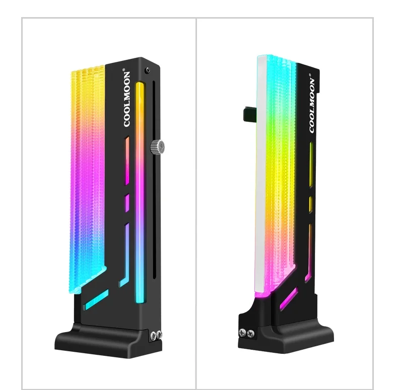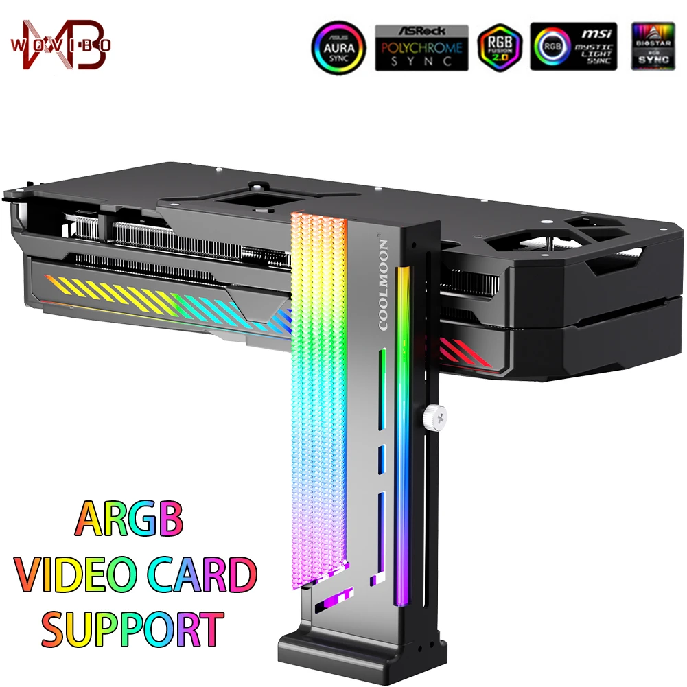 5. Altura ajustable, adecuada para una variedad de tarjetas gráficas. Soporte de soporte de video de gráficos CoolMoon GPU para caja de computadora Soporte de tarjeta de video de aleación de aluminio 5V 3PIN RGB ARGB Aura Sync