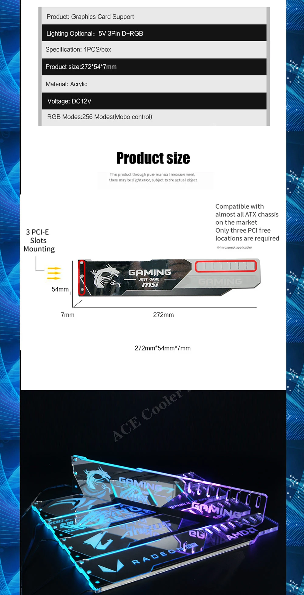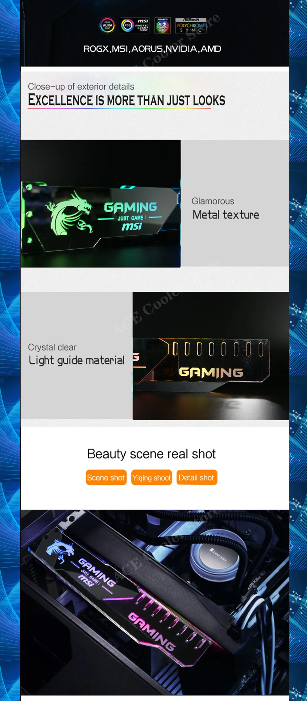 Comprar Soporte de tarjeta gráfica GPU Sag Mirror Plane, marca Belief ROG MSI AROUS AMD NVIDIA Logos 5V ARGB MB SYNC, funda de ordenador DIY