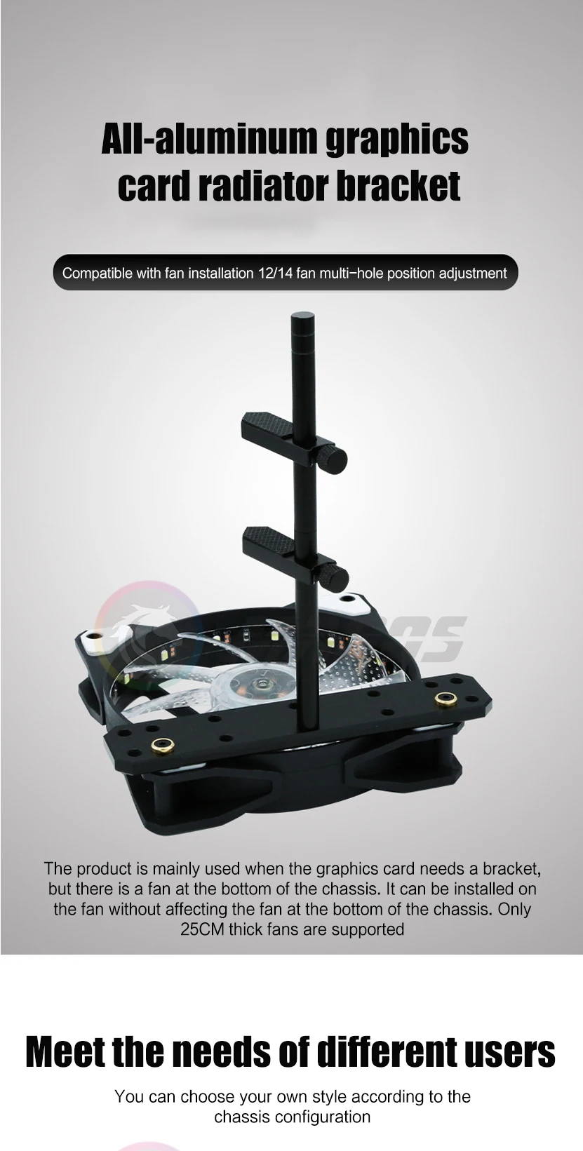 Soporte de tarjeta gráfica para Lian Li, caja de ordenador de vidrio templado, posición del ventilador, conector GPU, marco de soporte de aleación de aluminio