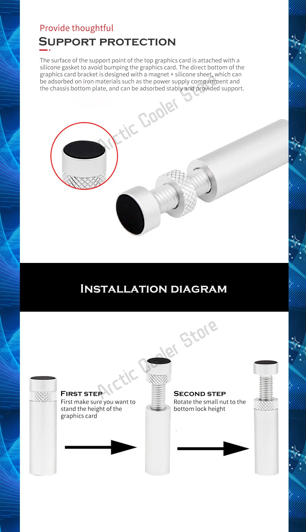 Comprar Soporte de tarjeta gráfica, marco de soporte de Jack, aluminio, Metal, parte inferior magnética ITX, chasis pequeño, soporte de tarjeta gráfica Anti-flexión