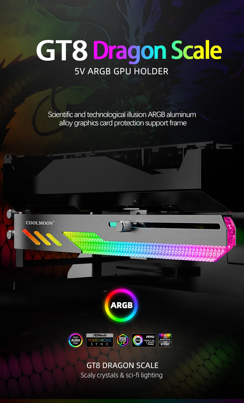 Comprar Soporte de tarjeta gráfica de montaje Horizontal GT8 Dragon Scale ARGB ordenador de escritorio soporte de companheiro de tarjeta gráfica fija