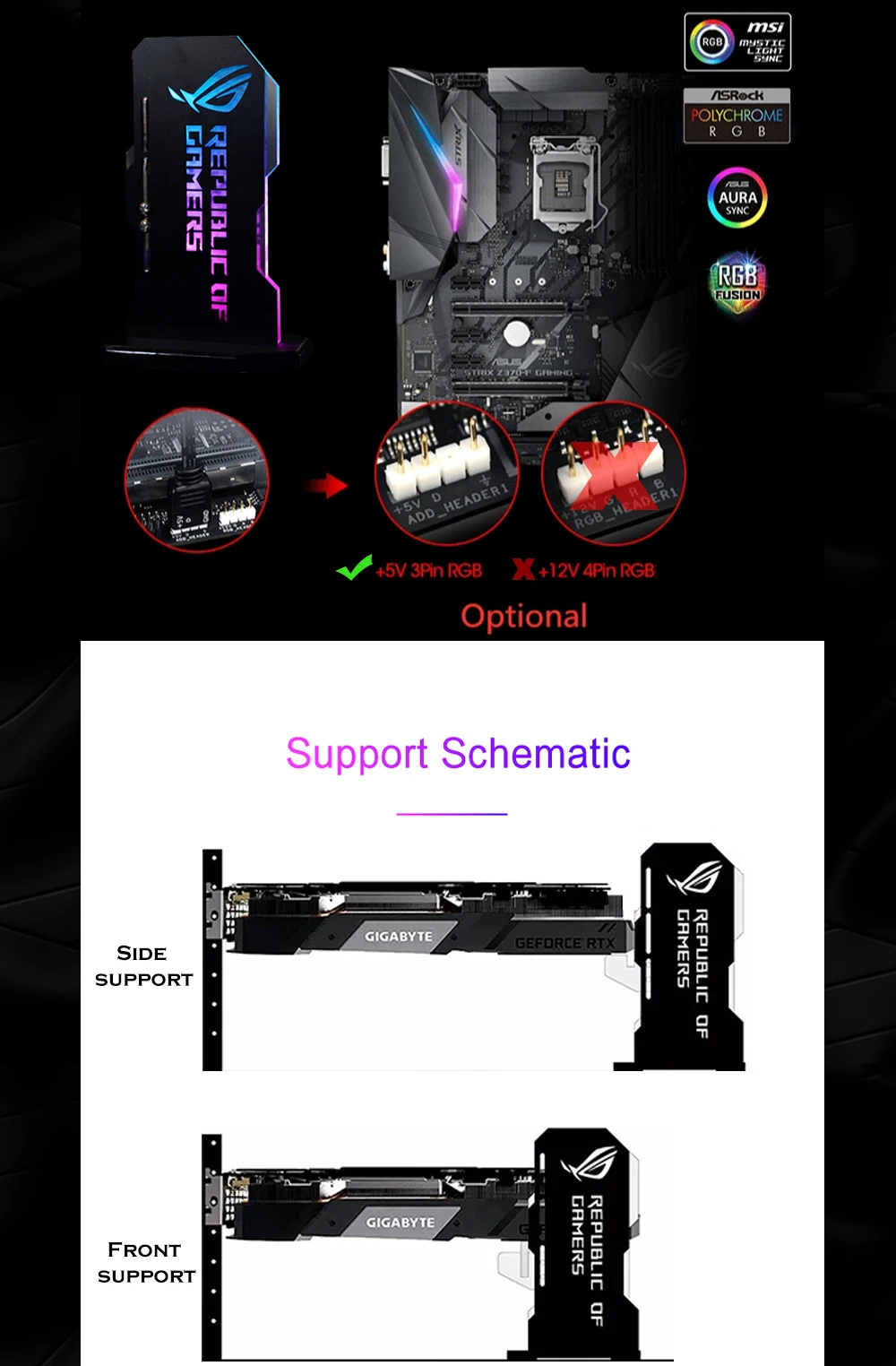 Comprar Soporte de tarjeta gráfica Symphony, GPU Vertical, 5V, A-RGB, soporte VGA, 12V, RGB, colorida, AURA SYNC, personalizable