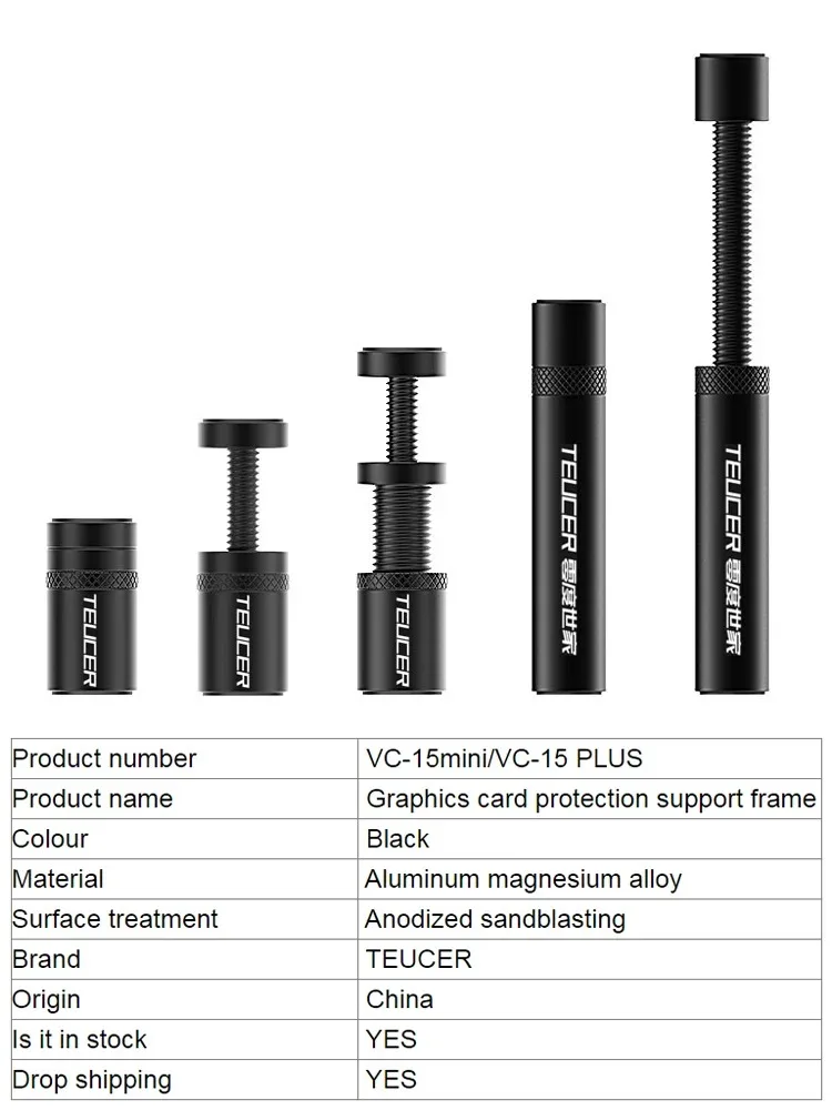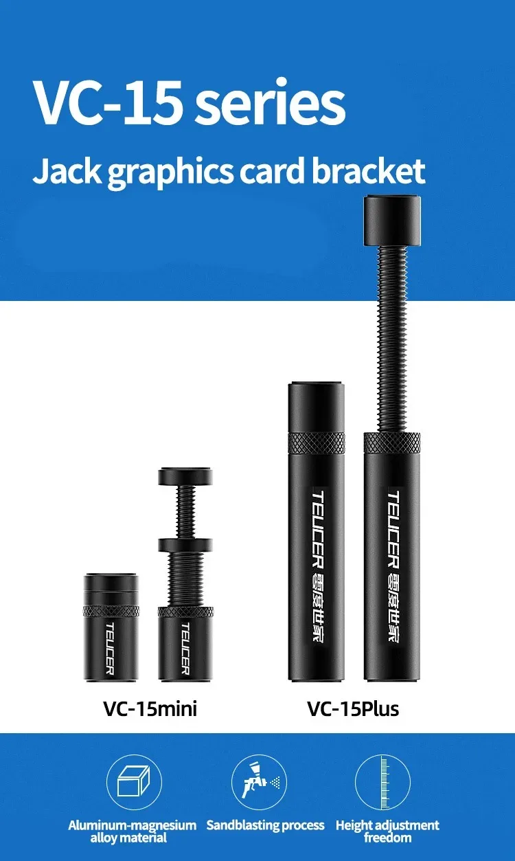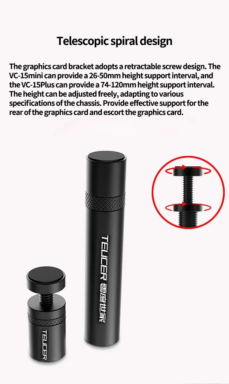 Comprar Soporte para tarjeta gráfica TEUCER VC-15, soporte para GPU, tornillo giratorio telescópico ajustable, soporte Vertical de aleación de aluminio