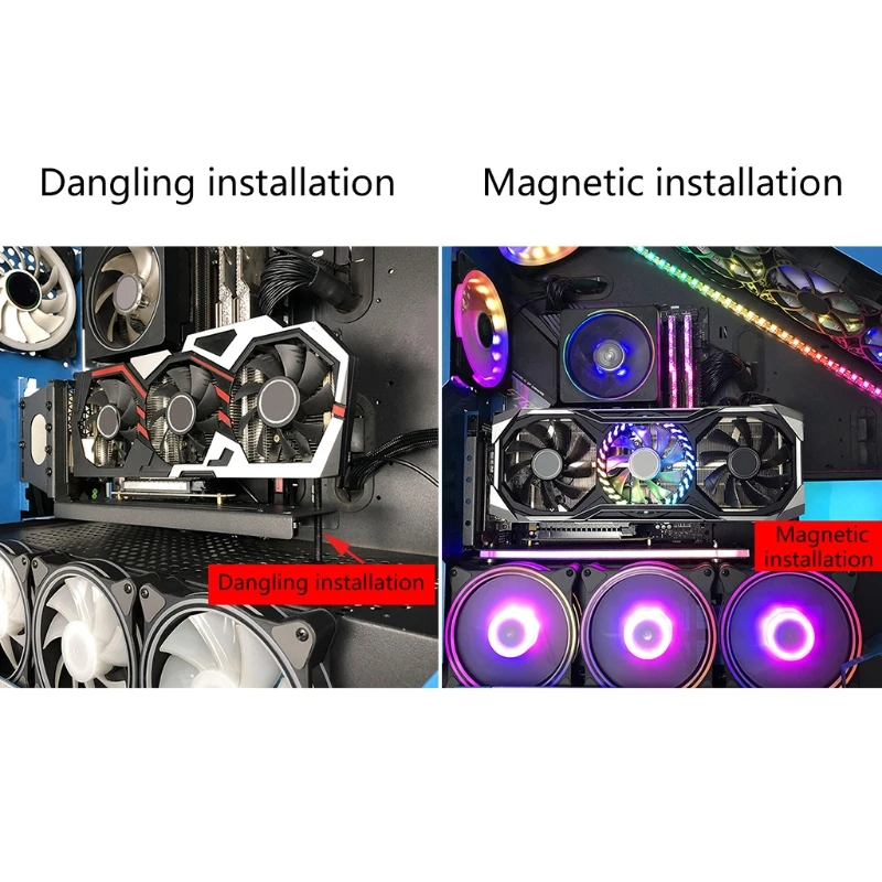 Diseñado para la mayoría de tarjetas gráficas, el soporte de metal se ajusta perfectamente a la funda.