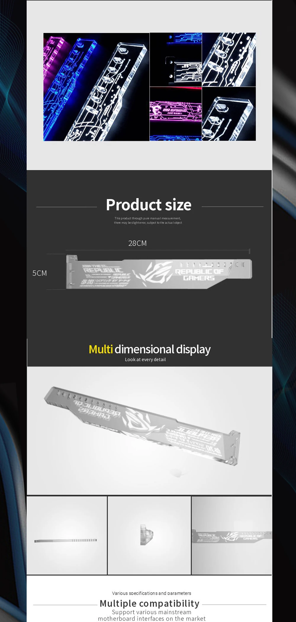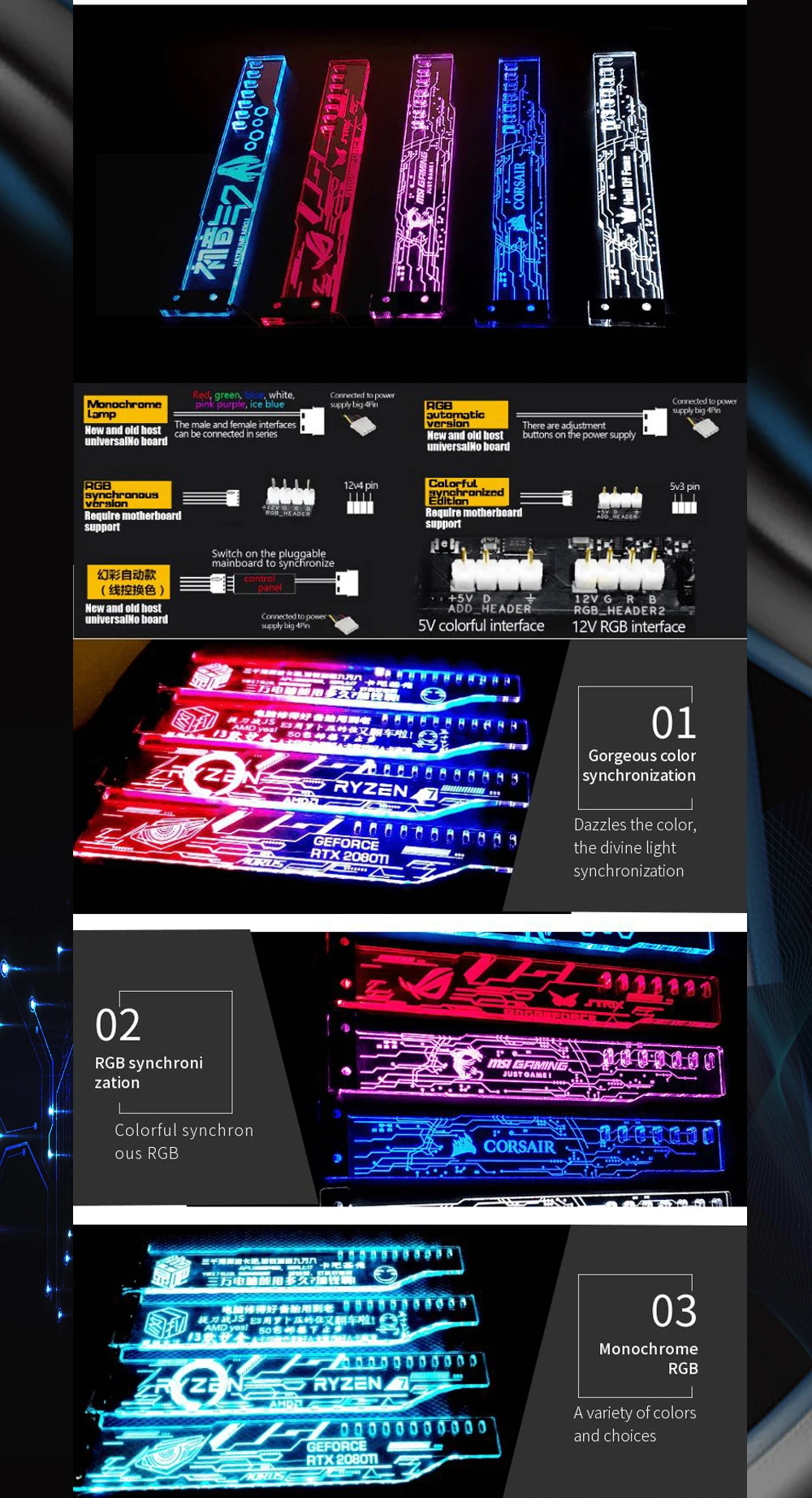 Comprar Soporte de tarjeta de vídeo personalizada, soporte de tarjeta gráfica RGB, GPU, VGA, lámpara de fe, sincronización M/B, MOD de PC, 5V, 3 pines, ARGB, 12V, 4 pines