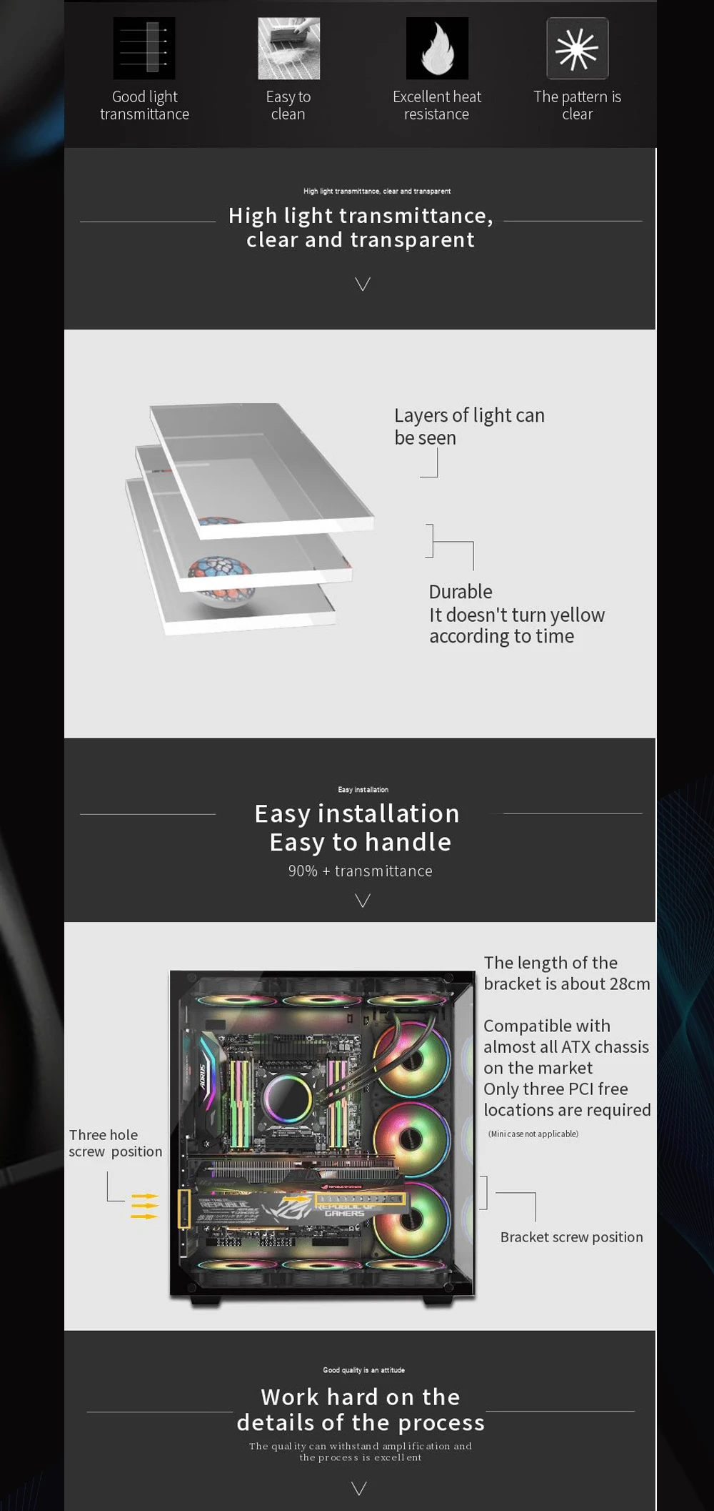 1. Acrílico importado2. Luces LED de alta calidad3. Colorido RGB verdadero sinfonía de 16 colores4. Grabado de precisión de alta gama, nunca pintarEstilo1. Monocromo-el monocromo siempre es brillante