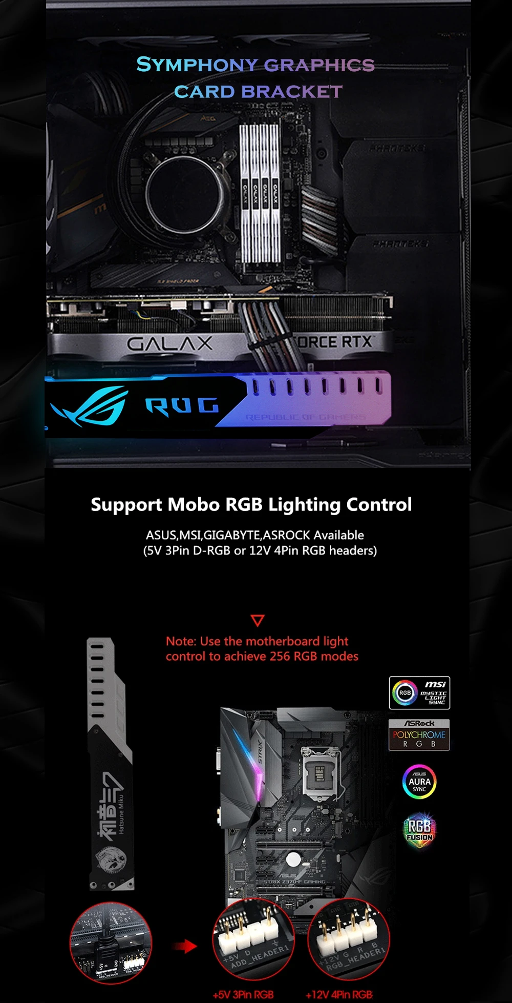 Comprar Soporte para tarjeta de vídeo RGB GPU, 5V, ARGB, tarjeta gráfica, VGA, 12V, RGB, ASUS, MSI, GIGABYTE, ASROCK, 3 pines, 4 pines, M, B, AURA SYNC