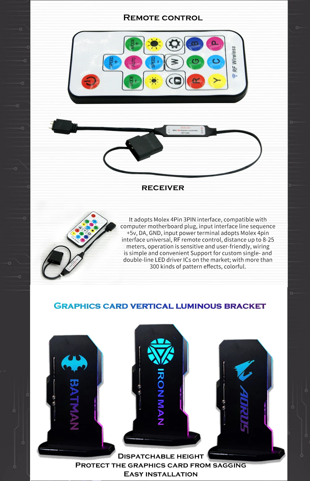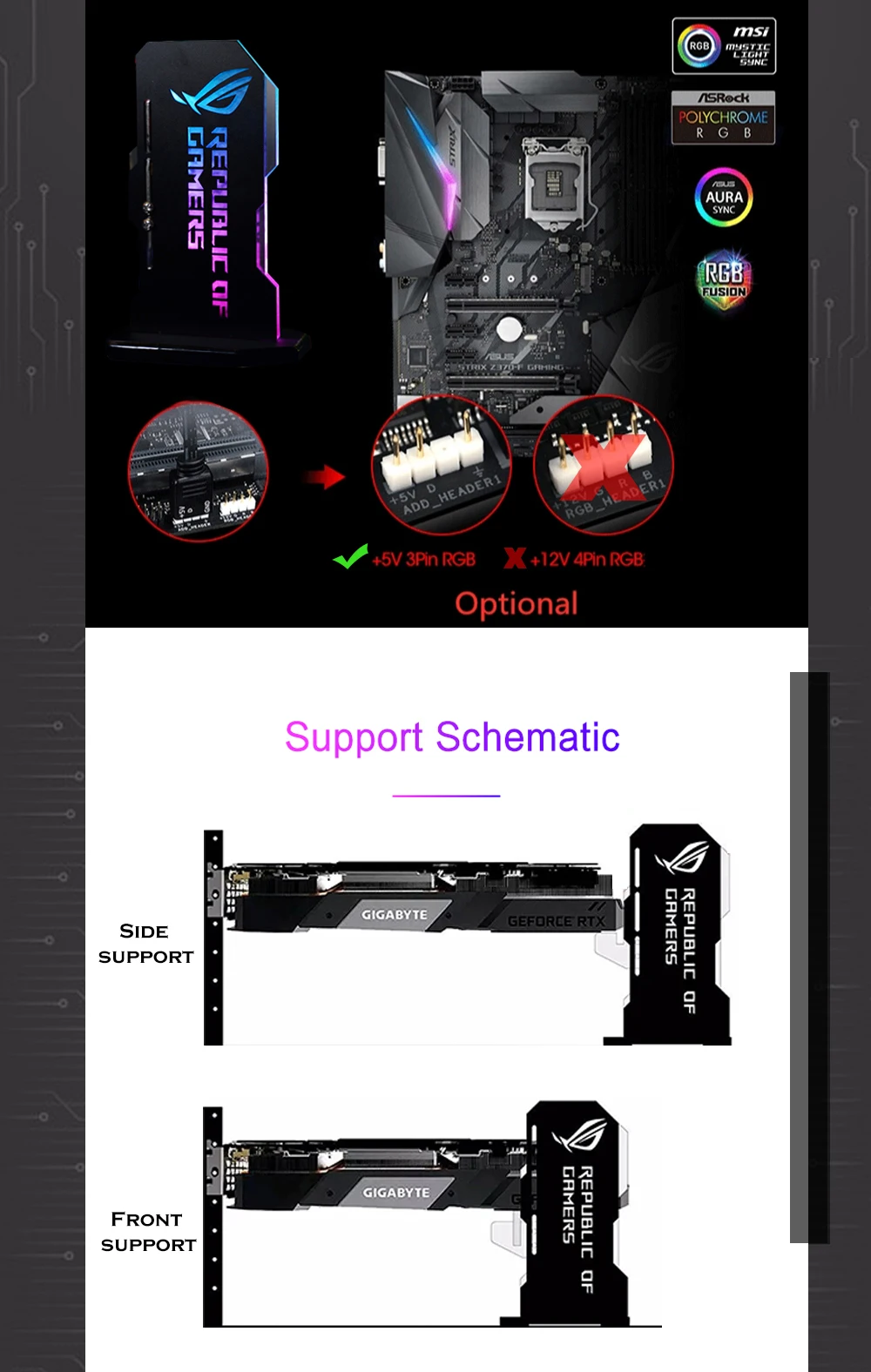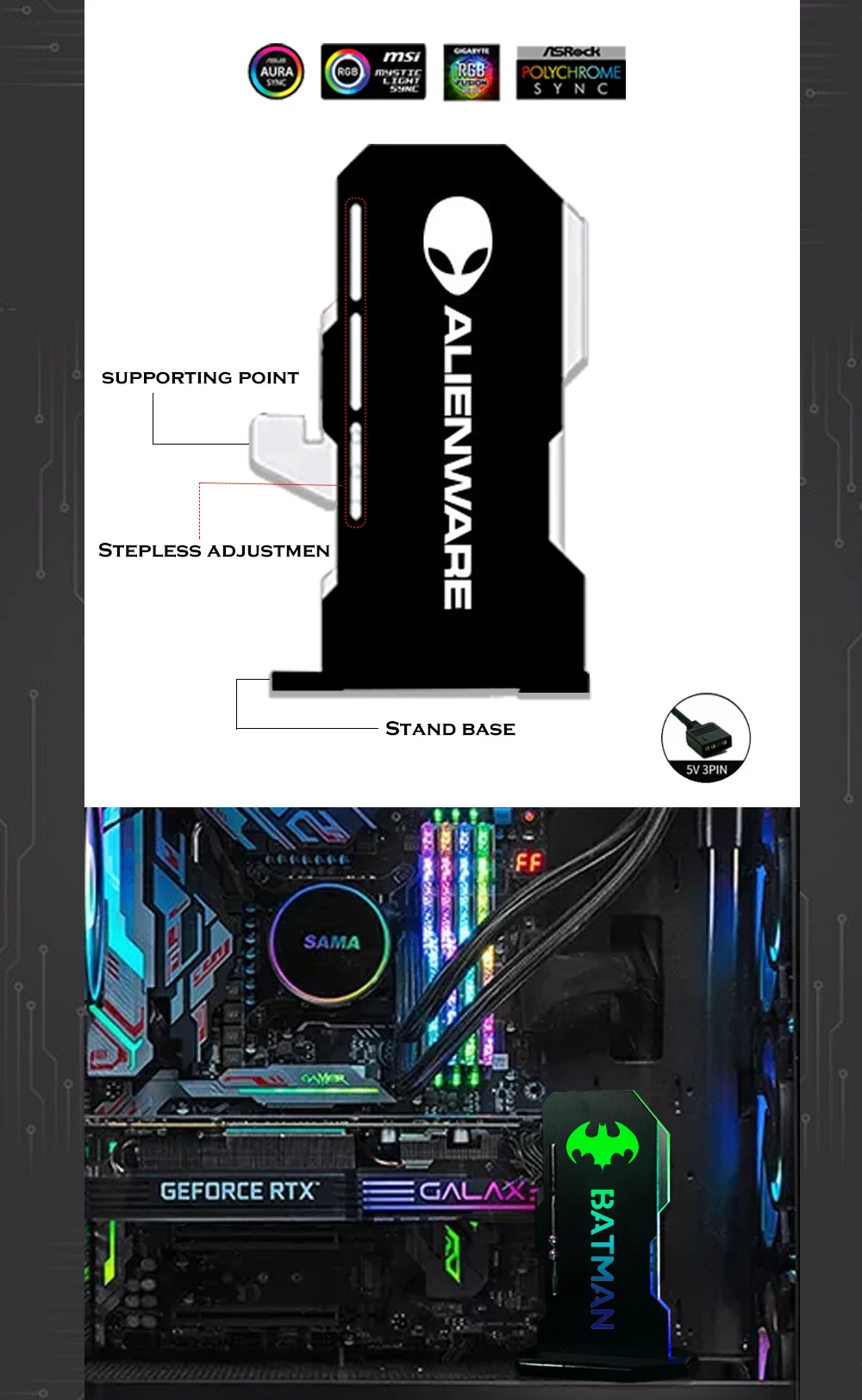 Comprar Soporte de tarjeta de Video RGB, soporte de logotipo personalizado, soporte de GPU para conector gráfico, Gamers de computadora, pieza de MOD personalizada