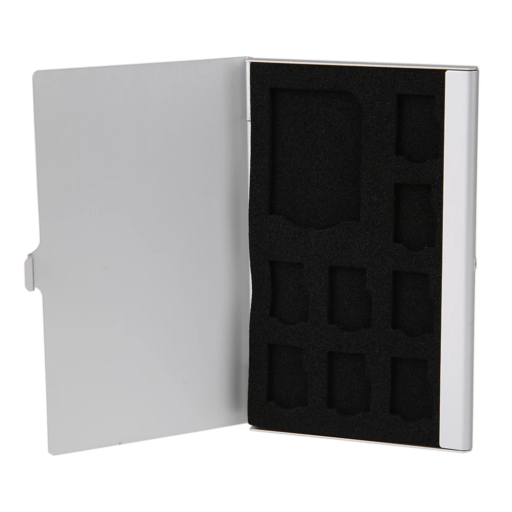 Monocapa Aluminio 1SD + 8TF Tarjetas SD Pin StorageBox Case Holder Protector