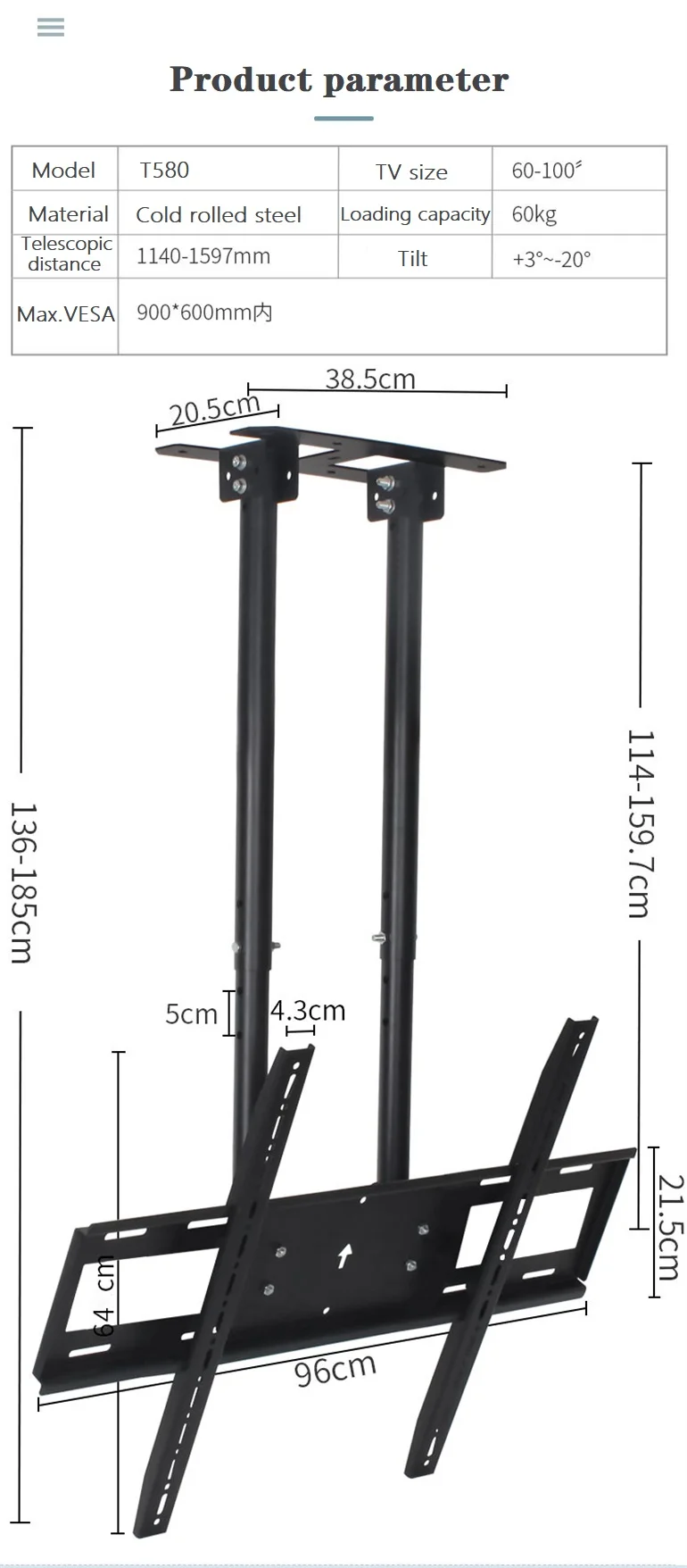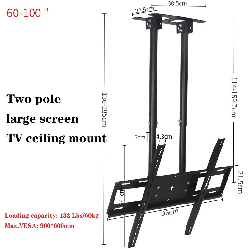 Comprar Soporte de techo para TV HILLPORT, colgador de Soporte para TV, inclinable, telescópico, adecuado para 60-100 pulgadas, carga de 60kg, brazo para PC T580
