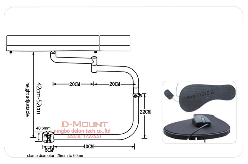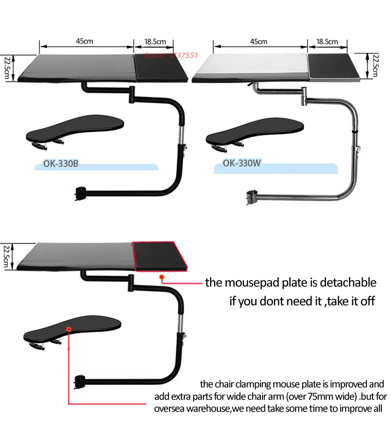 Comprar Soporte de teclado cuadrado de movimiento completo, accesorio multifuncional OK330 OK331, soporte de escritorio para ordenador portátil, acero inoxidable, 20kg + abrazadera para silla, alfombrilla de ratón