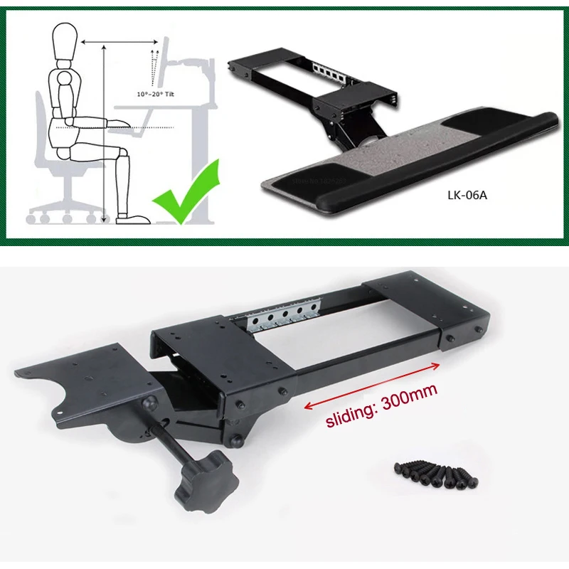 Comprar Soporte para teclado con reposamuñecas, ergonómico, deslizante, inclinable, tamaño XL, con dos alfombrillas para ratón, para escritorio de ordenador, bandeja para teclado, LK06AD