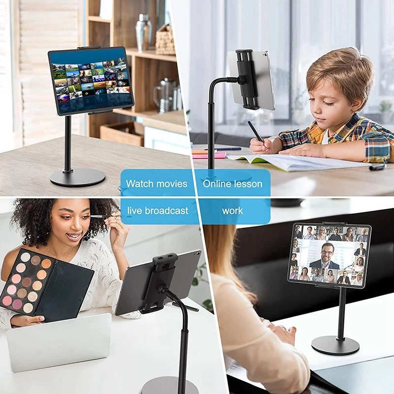 [Free Your Hand]- Are you tired of holding or looking down your phone or tablet at the same posture for a long time? Get this adjustable tablet phone stand holder, free your hand while you viewing recipes, FaceTime, zoom meetings, Video Calls, online conferences, watching movies etc.