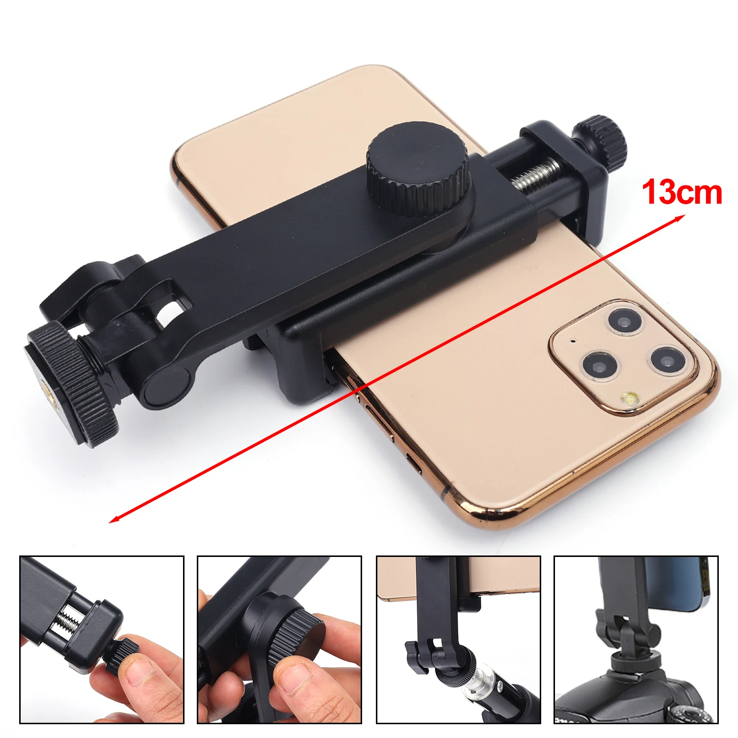 Soporte para teléfono ajustable universal, 360 ° Adaptador de montaje con clip para teléfono con rotación para trípode, palo selfie, grabación de vídeo manos libres.