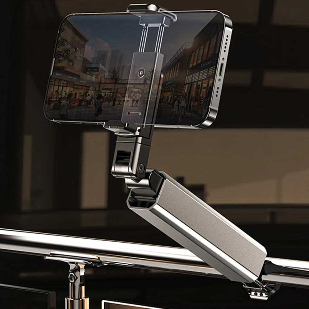 3. Material premium y artesanía:Construido con aleación de aluminio de alta calidad, nuestro soporte es duradero y resistente a altas temperaturas, evitando roturas en caso de caídas. El exquisito tratamiento de la superficie anodizada proporciona durabilidad y una apariencia elegante, mientras que la almohadilla de silicona antideslizante en la abrazadera protege su teléfono de arañazos o caídas. El gancho plegable portátil sostiene firmemente su teléfono, lo que garantiza una estabilidad y fiabilidad firmes.
