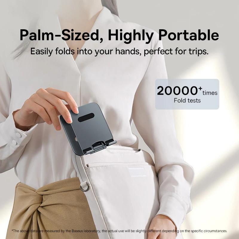 Soporte plegable biaxial Baseus: ajusta la altura y el ángulo de visión a la posición más cómoda para ti, protegiendo tu cuello y vista.
