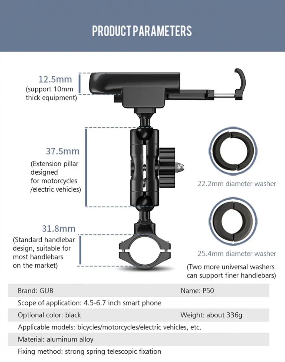 Nombre: Soporte universal para teléfono de bicicleta GUB P50 de aleación de aluminio