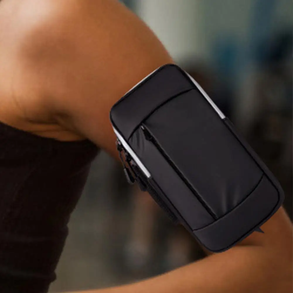 4. Organización eficiente: ingeniosamente diseñado con dos bolsillos con cremallera, el compartimento principal de este soporte para brazo asegura su teléfono móvil, mientras que un bolsillo adicional guarda cuidadosamente auriculares y llaves.