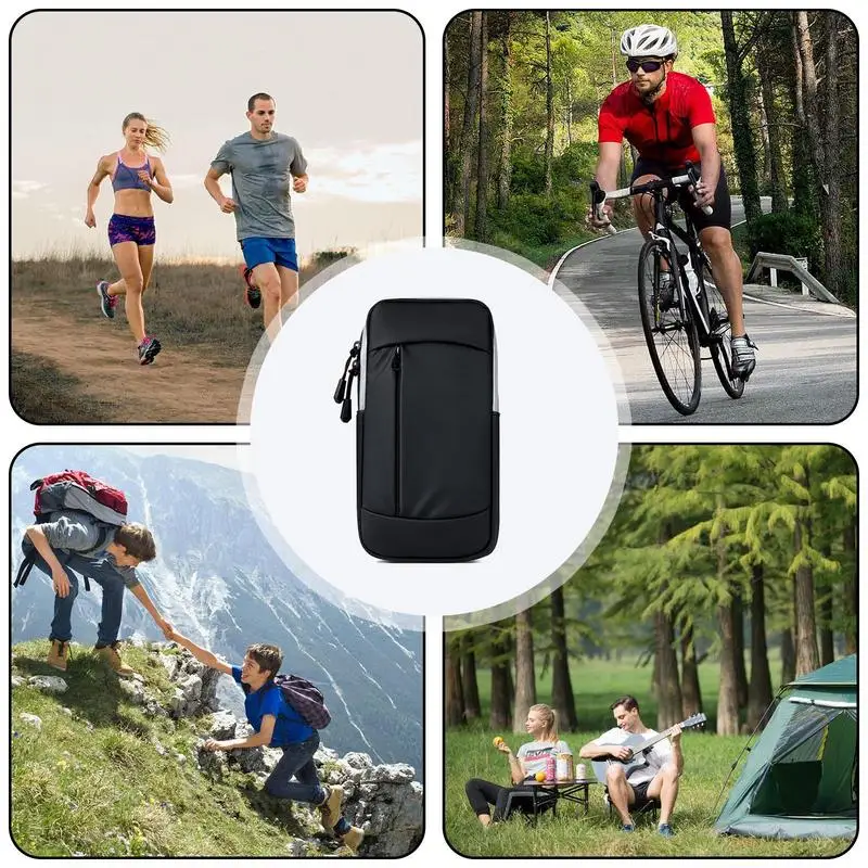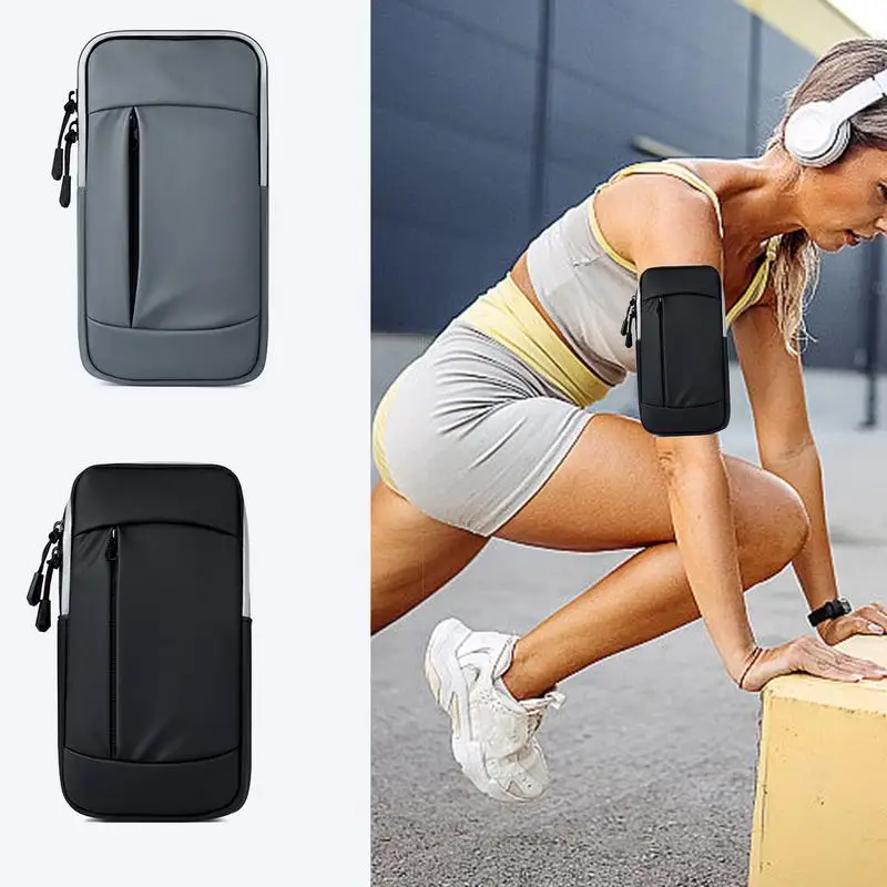 4. Organización eficiente: ingeniosamente diseñado con dos bolsillos con cremallera, el compartimento principal de este soporte para brazo asegura su teléfono móvil, mientras que un bolsillo adicional guarda cuidadosamente auriculares y llaves.