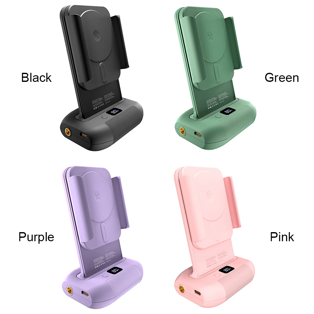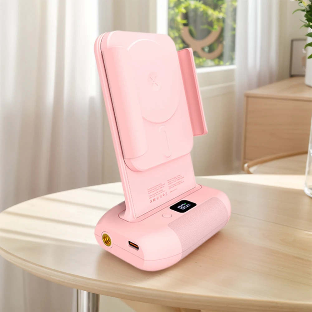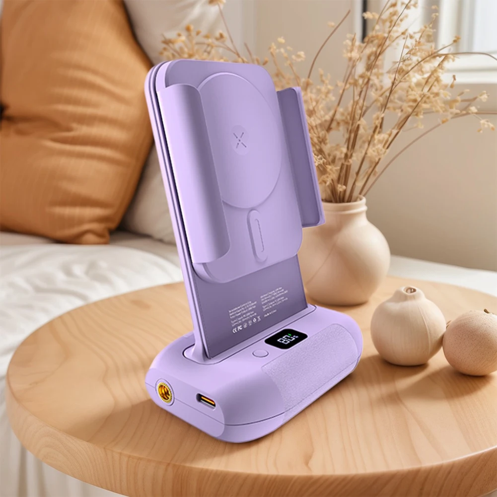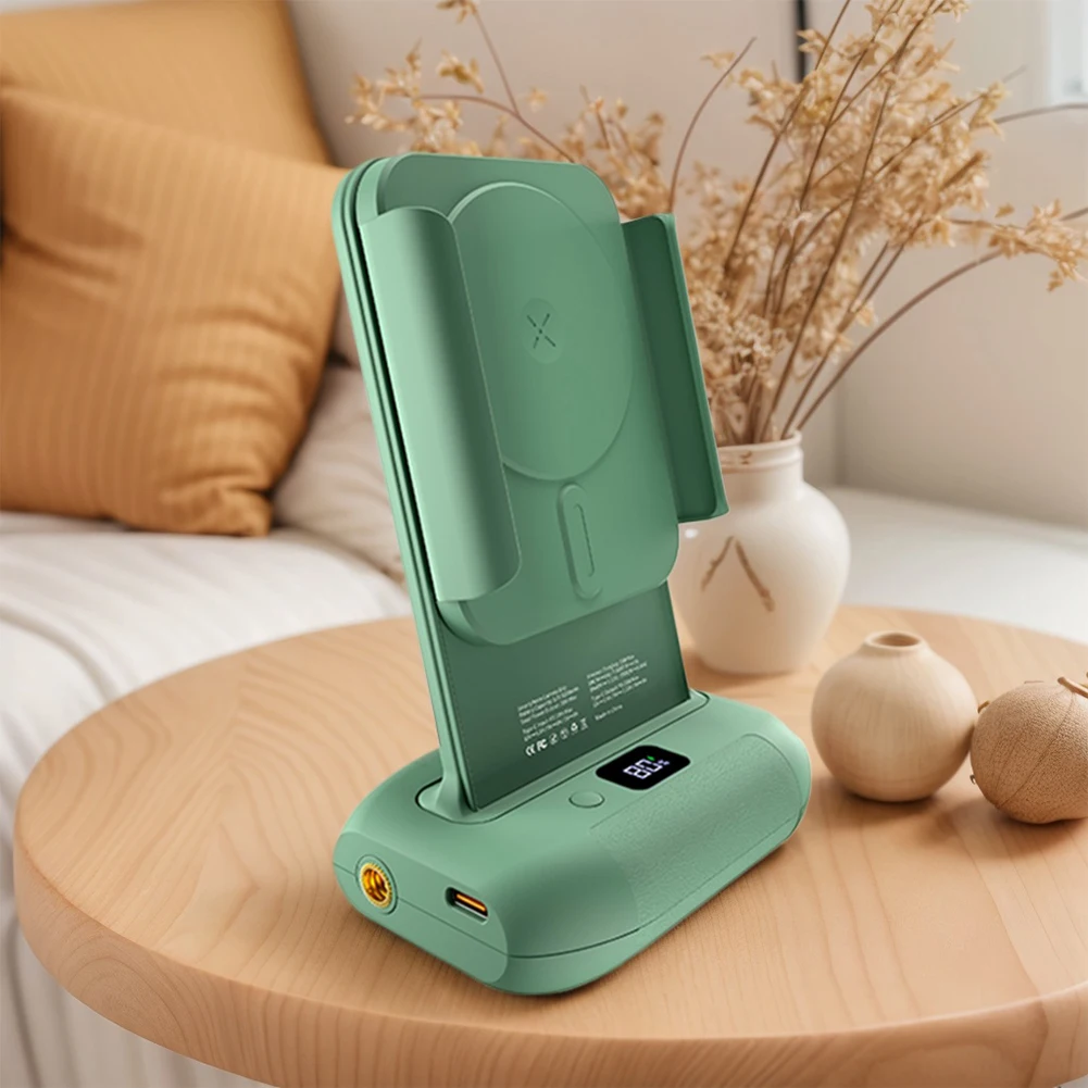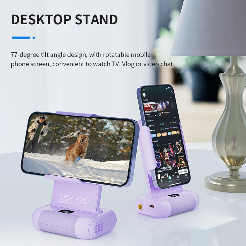 4. Banco de energía de carga dual:El cargador inalámbrico actúa como un potente banco de energía con capacidad de 5200 mAh, compatible con carga por cable e inalámbrica para mantener sus dispositivos encendidos mientras viaja.