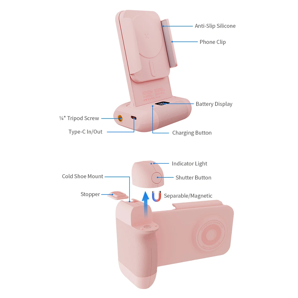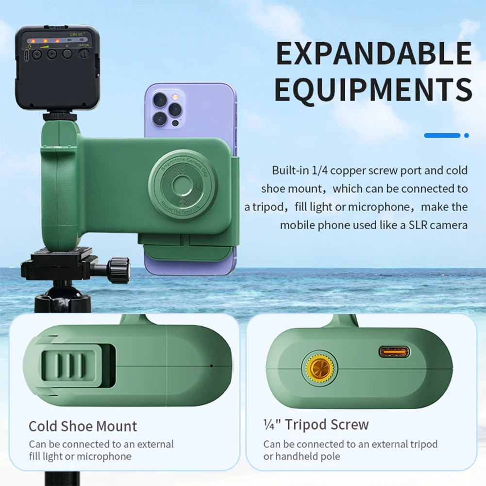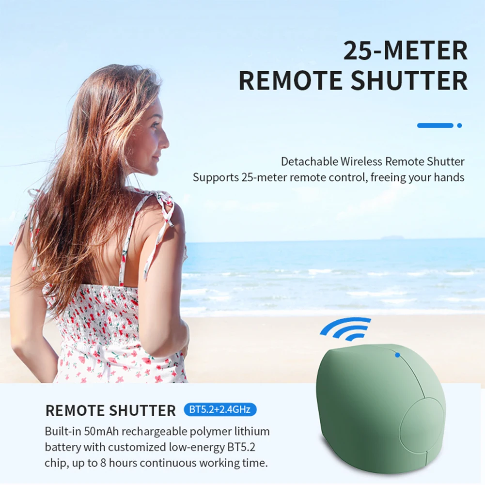 2.BT Comodidad:El control remoto BT de 25 metros del soporte para teléfono permite disparos independientes y sin esfuerzo.Con BT 5.2 y una batería recargable de 8 horas, capture cada momento con facilidad.