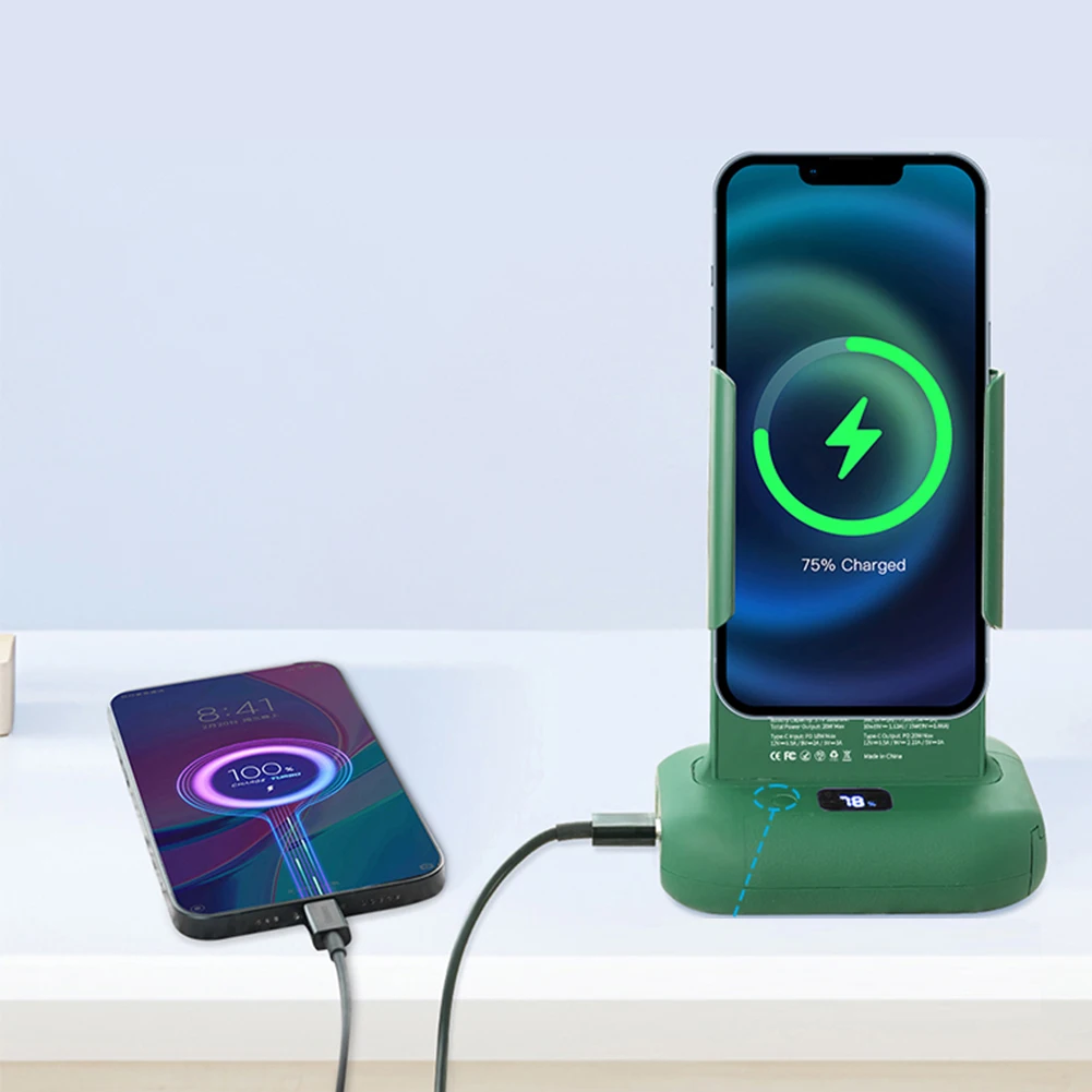 5.Pantalla de batería inteligente:El soporte para teléfono de carga inalámbrica de escritorio está equipado con una pantalla digital de batería para monitoreo en tiempo real, lo que garantiza que siempre conozca su estado de energía durante las tomas.