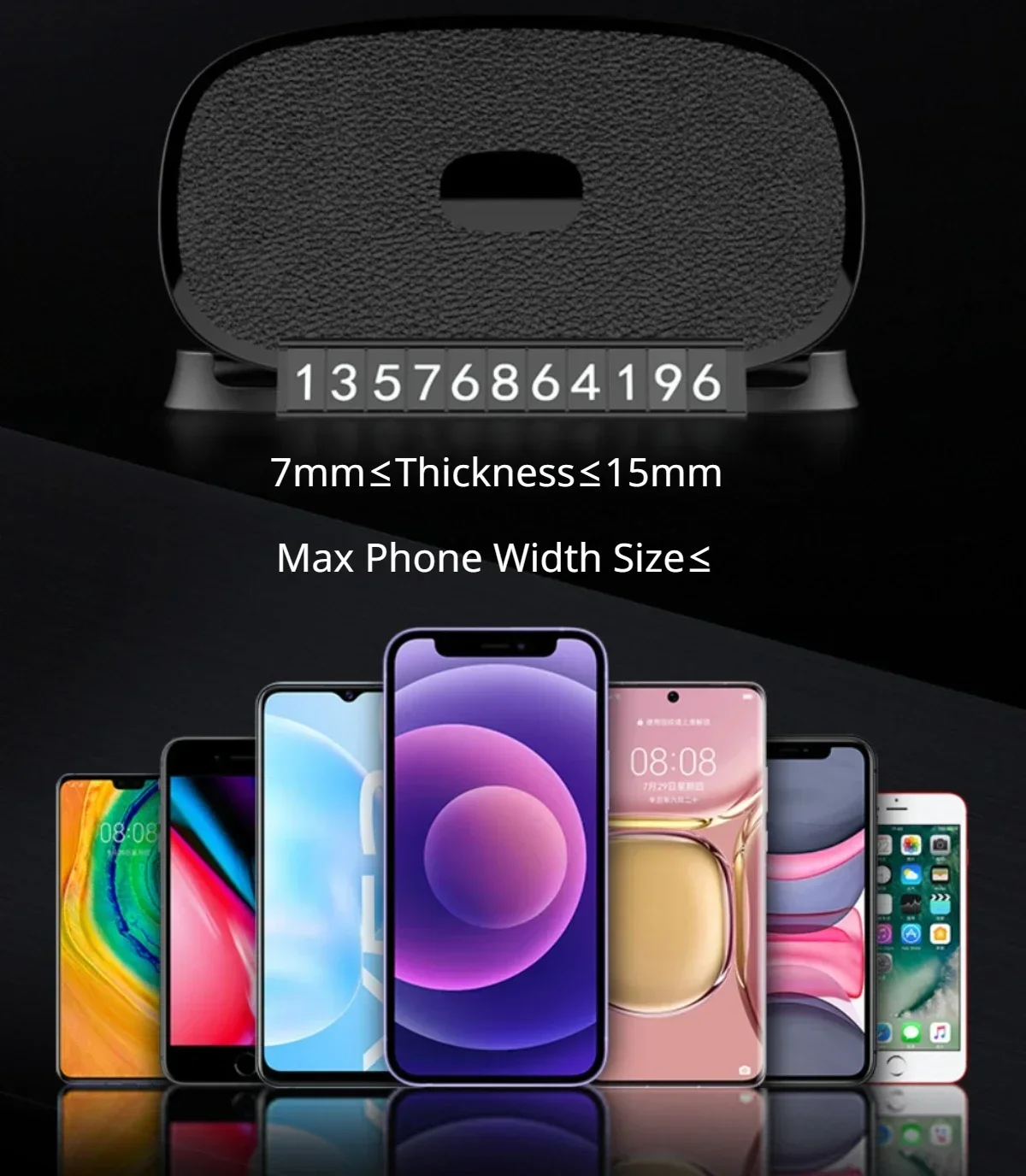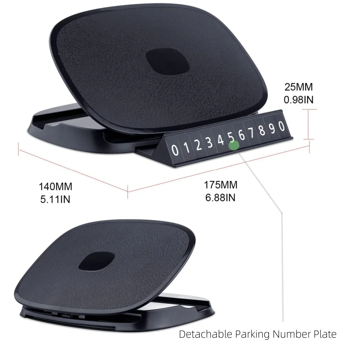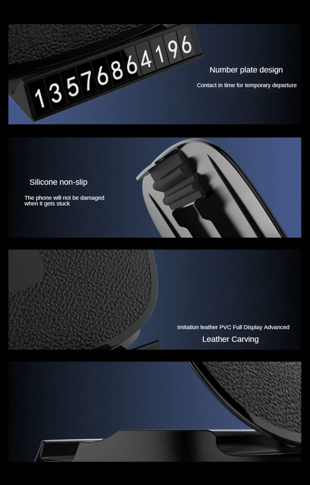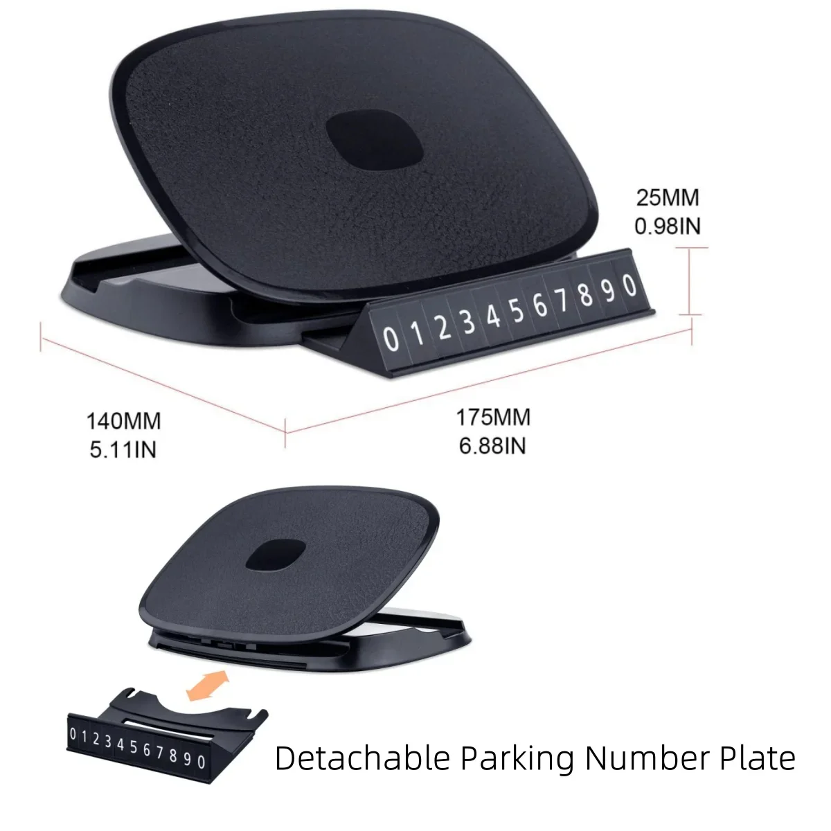 Soporte para teléfono de coche 360 ° Soporte antideslizante para teléfono inteligente con GPS para tablero de rotación, soporte de 4 a 6 pulgadas con número de estacionamiento